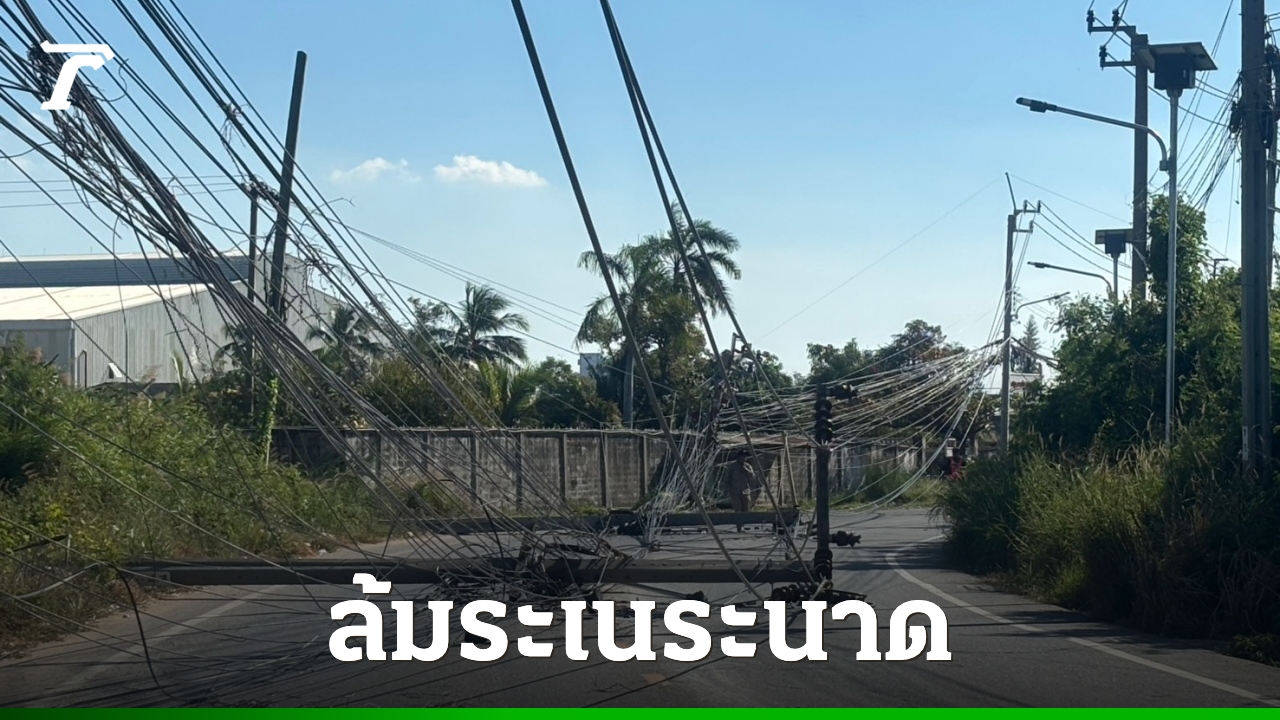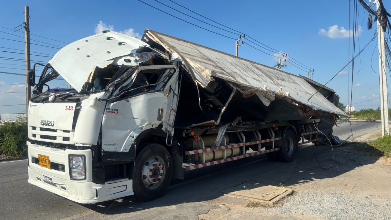 สาวขับรถบรรทุก พุ่งชนเสาไฟฟ้าข้างทางล้มระนาว ทำรถติดยาวหลายกิโลเมตร ใช้เวลานานกว่า 3 ชั่วโมงจึงเปิดเส้นทางได้ตามปกติ