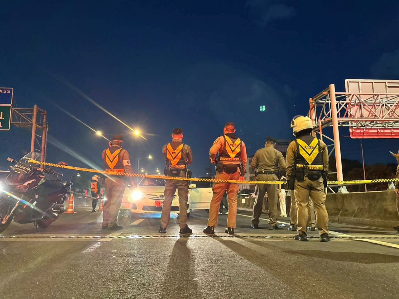 - จากการตรวจสอบกล้องวงจรปิดบริเวณด่านเก็บเงิน พบว่า รถที่ก่อเหตุคือ รถตู้โตโยต้า เวลไฟร์ สีขาว ทะเบียน 2 กผ 7778 กรุงเทพมหานคร