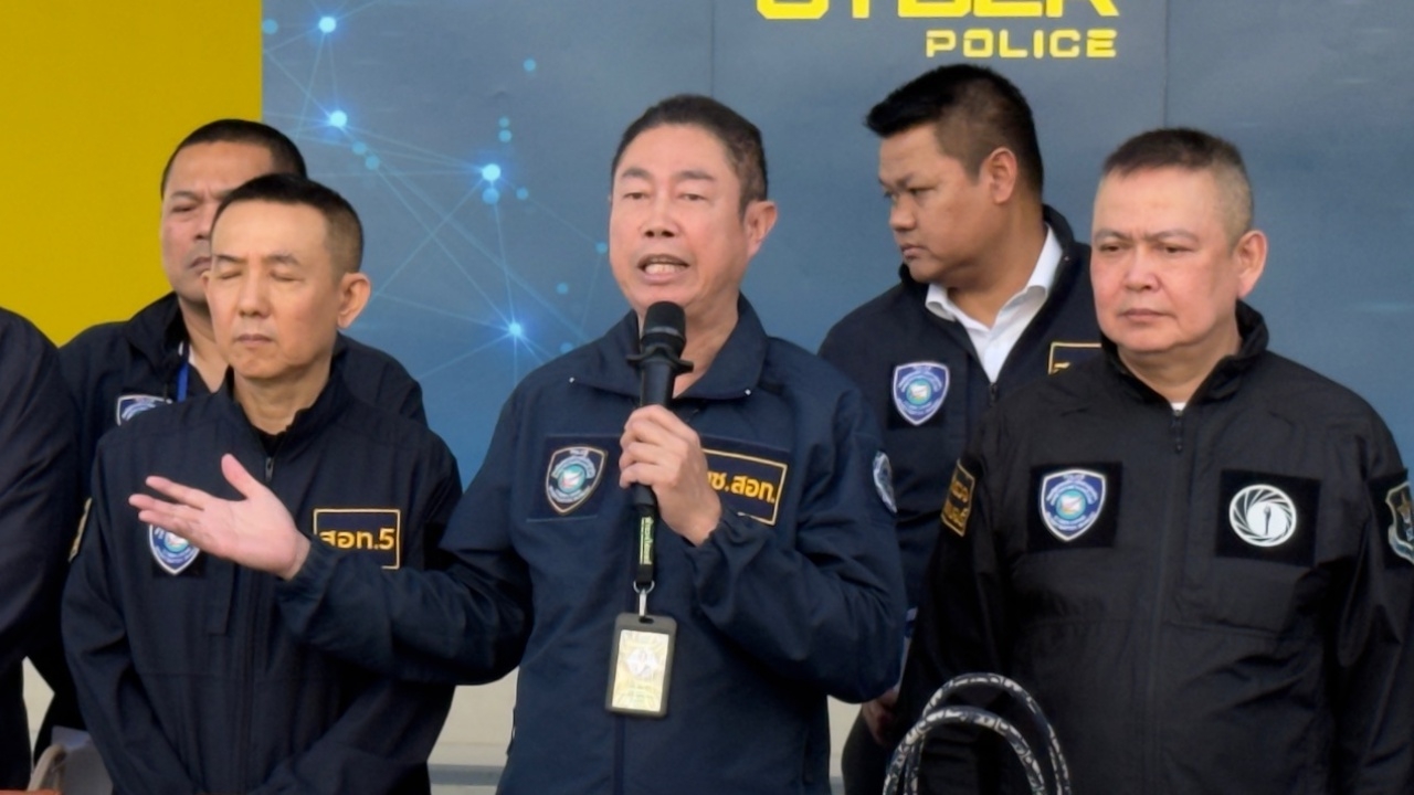 เมื่อเวลา 14.30 น. วันที่ 26 ธันวาคม 2568 ที่กองบัญชาการตำรวจสืบสวนสอบสวนอาชญากรรมทางเทคโนโลยี (บช.สอท.) เมืองทองธานี อ.ปากเกร็ด จ.นนทบุรี พล.ต.ท.สุรพล เปรมบุตร ผบช.สอท. พล.ต.ท.นราเดช ทิพย์รักษ์ ผบช.ประจำ สง.ผบ.ตร. ช่วยราชการ บช.สอท. พล.ต.วิวัฒน์ คำชำนาญ รอง ผบช.สอท. พล.ต.ต.คมกฤช สุขไทย ผบก.สอท.3 พล.ต.ต.ศิลา กาญจน์รักษ์ ผบก.สอท.5 พล.ต.ต.ทรงกลด เกริกกฤตยา ผบก.ตอท.