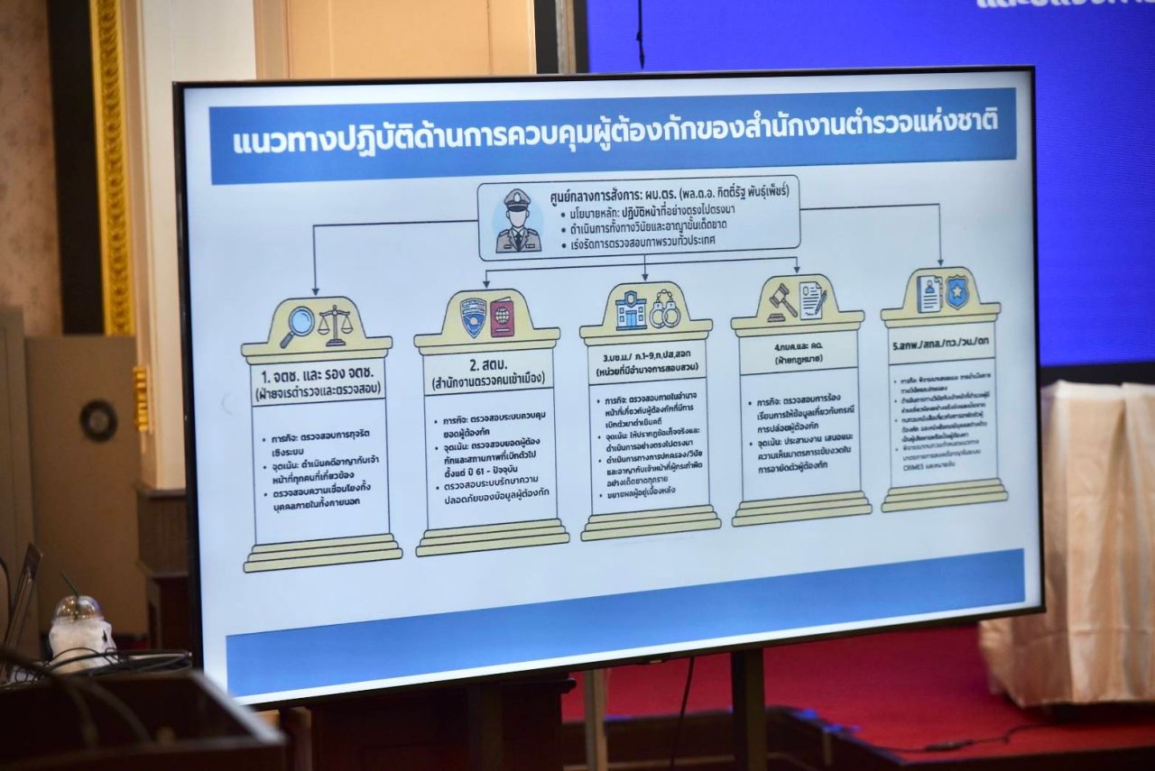 พล.ต.ท.ไตรรงค์ฯ กล่าวว่า ผบ.ตร.ได้กำชับให้ปฏิบัติหน้าที่อย่างตรงไปตรงมา เร่งรัดการตรวจสอบภาพรวมทั่วประเทศ และดำเนินการทั้งทางวินัยและอาญาขั้นเด็ดขาด เพื่อสร้างความโปร่งใสและความเชื่อมั่นให้กับประชาชน โดยมีการแบ่งมอบภารกิจให้แก่ 5 ส่วนงานหลัก คือ 1. ด้านการตรวจสอบ มอบหมายให้จเรตำรวจแห่งชาติ ดำเนินการตรวจสอบการทุจริตเชิงระบบ ดำเนินคดีอาญากับเจ้าหน้าที่ทุกคนที่เกี่ยวข้อง และตรวจสอบความเชื่อมโยงทั้งบุคคลภายในและภายนอกองค์กร, 2. ด้านการตรวจคนเข้าเมือง มอบหมายให้สำนักงานตรวจคนเข้าเมือง ตรวจสอบระบบควบคุมยอดผู้ต้องกัก โดยต้องตรวจสอบยอดผู้ต้องกักและสถานภาพผู้ที่ถูกเบิกตัวไปตั้งแต่ปี 2561 จนถึงปัจจุบัน รวมถึงตรวจสอบระบบรักษาความปลอดภัยของข้อมูลผู้ต้องกัก, 3. ด้านการสอบสวน มอบหมายให้กองบัญชาการตำรวจนครบาล, ตำรวจภูธรภาค 1-9, กองบัญชาการตำรวจสอบสวนกลาง, กองบัญชาการตำรวจปราบปรามยาเสพติด และกองบัญชาการตำรวจสืบสวนสอบสวนอาชญากรรมทางเทคโนโลยี ให้ตรวจสอบภายในอำนาจหน้าที่เกี่ยวกับผู้ต้องกักที่มีการเบิกตัวมาดำเนินคดี โดยให้ปรากฏข้อเท็จจริงและดำเนินการอย่างตรงไปตรงมา ดำเนินการทางปกครอง วินัย และอาญากับเจ้าหน้าที่ผู้กระทำผิดอย่างเด็ดขาดทุกราย พร้อมขยายผลถึงผู้อยู่เบื้องหลัง, 4. ด้านกฎหมาย มอบหมายให้สำนักงานกฎหมายและคดี และกองคดีอาญา ตรวจสอบการร้องเรียนการให้ข้อมูลเกี่ยวกับกรณีการปล่อยผู้ต้องกัก โดยเน้นการประสานงาน เสนอแนะความเห็น และกำหนดมาตรการเข้มงวดในการอายัดตัวผู้ต้องกัก และ 5. ด้านการสนับสนุน หน่วยงานสนับสนุนต่าง ๆ ได้แก่ สำนักงานกำลังพล, สำนักงานเทคโนโลยีและการสื่อสาร, กองทะเบียนประวัติอาชญากร, กองวินัย และกองการต่างประเทศ พิจารณาเสนอแนะการดำเนินการทางวินัยและปกครอง โดยดำเนินการทางวินัยกับเจ้าหน้าที่ตำรวจที่มีส่วนเกี่ยวข้องอย่างจริงจังและเด็ดขาด ทบทวนหนังสือเกี่ยวกับการอายัดตัวผู้ต้องกัก และหนังสือกรณีบุคคลต่างด้าวเป็นผู้เสียหายหรือเป็นผู้ต้องหา รวมถึงพิจารณาทบทวนแนวทางมาตรการการลงคดีอาญาในระบบ CRIMES และหมายจับ