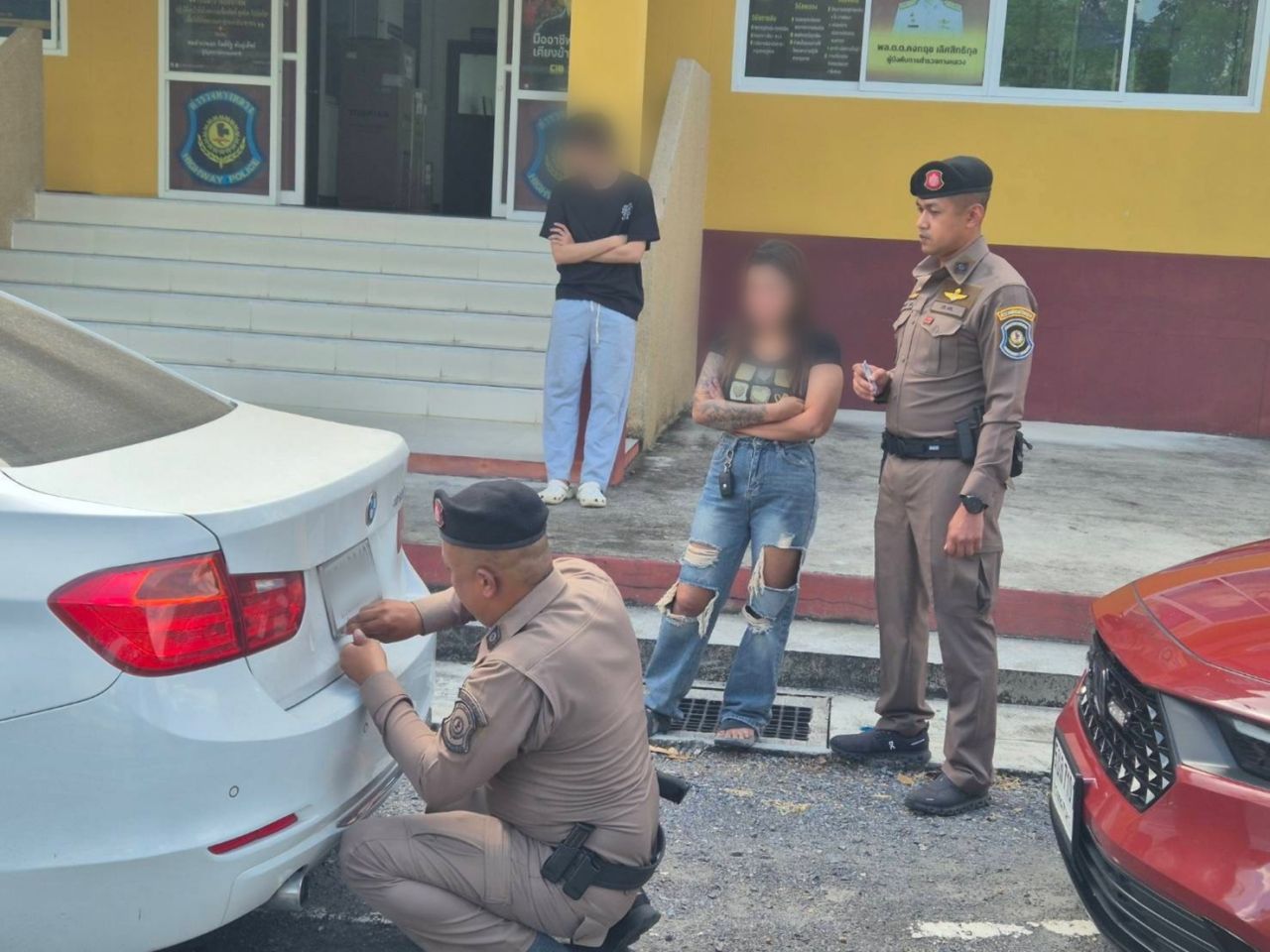 ตำรวจทางหลวง รวบสาวขับ BMW ใช้ป้าย–ภาษีปลอม สารภาพซื้อรถหลุดจำนำผ่านเฟซบุ๊ก ราคา 2.7 แสน ใช้งานข้ามจังหวัดก่อนถูกจับ ส่วนที่ชุมพร จับสาวขับรถโตโยต้า ใช้หมวกตำรวจวางไว้ที่หน้าคอนโซล ตรวจพบติดป้ายภาษีปลอม ส่วนเลขตัวถังเป็นคนละคัน