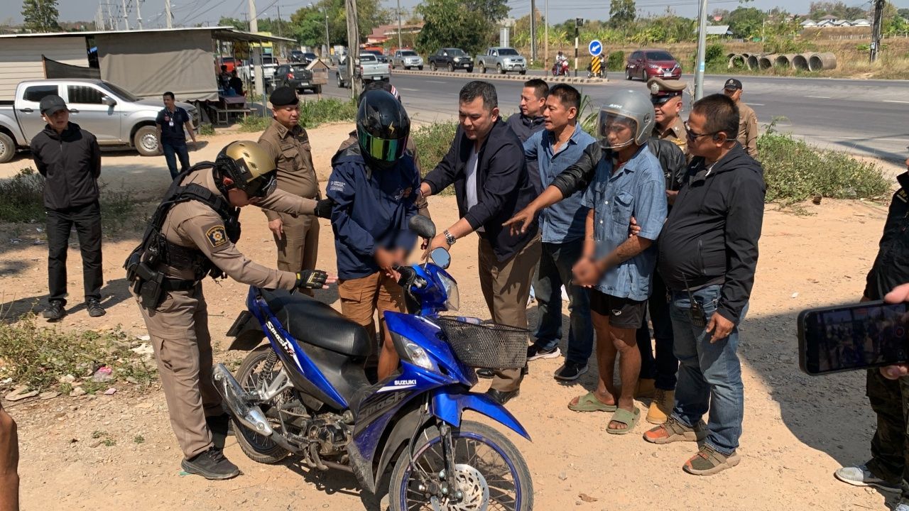 โดยเมื่อมาถึงที่เกิดเหตุได้นำตัวคนร้ายลงมาจากรถทีละคน แล้วนำมาขึ้นคร่อมรถจักรยานยนต์ มีนายมินส่อโซ ไม่มีนามสกุล อายุ 23 ปี เป็นคนขับและนายหน่ายลินอ่อง ไม่มีนามสกุล อายุ 21 ปี มือยิงตำรวจ เป็นคนซ้อน