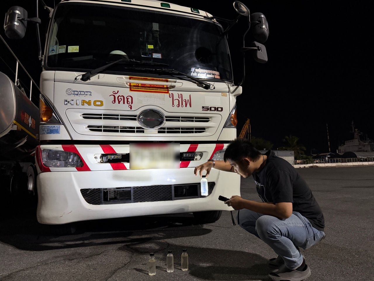ต่อมาเมื่อเวลา 19.30 น. เจ้าหน้าที่เรือ ซึ่งกำลังจะรับน้ำมันจากรถเทรลเลอร์ ได้ทำการตรวจสอบคุณภาพน้ำมันตามขั้นตอน แต่กลับพบว่า ภายในถังเป็นน้ำเปล่าทั้งหมด จำนวน 3 เทรลเลอร์ จากรถที่มาส่งทั้งหมด 5 คัน ก่อนที่คนขับรถเทรลเลอร์ทั้ง 3 รายจะไหวตัวหลบหนีไป