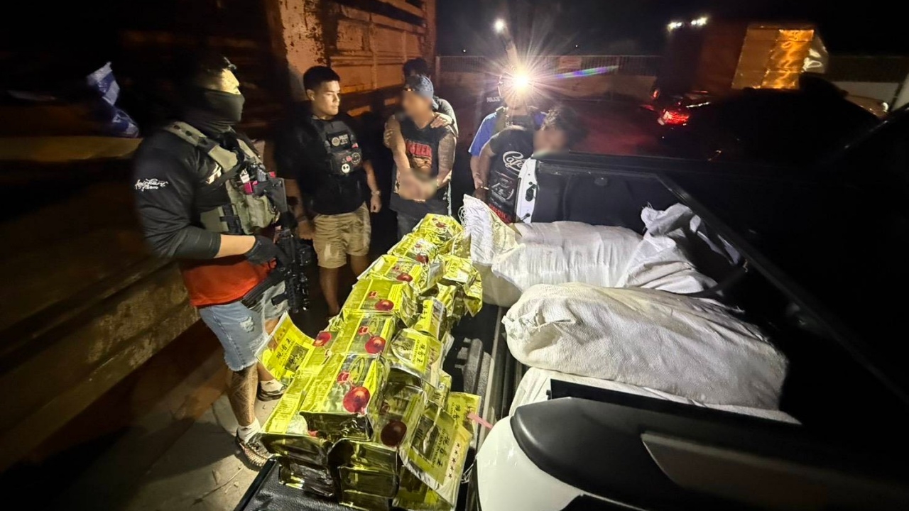 จากนั้นพบว่าชายทั้ง 3 คน ช่วยกันยกสิ่งของ มีลักษณะคล้ายกระสอบสีขาว จากบริเวณท้ายรถพ่วง มาใส่ไว้ที่บริเวณท้ายรถยนต์กระบะฟอร์ด สีขาว หลังขนเสร็จขณะกำลังจะแยกย้ายกัน เจ้าหน้าที่ขอตรวจค้น แต่ชายทั้ง 3 คนได้อาศัยความมืดวิ่งหลบหนีไปคนละทิศทาง เจ้าหน้าที่ติดตามและสามารถควบคุมตัวไว้ได้ 2 ราย สามารถหลบหนีไปได้ 1 ราย