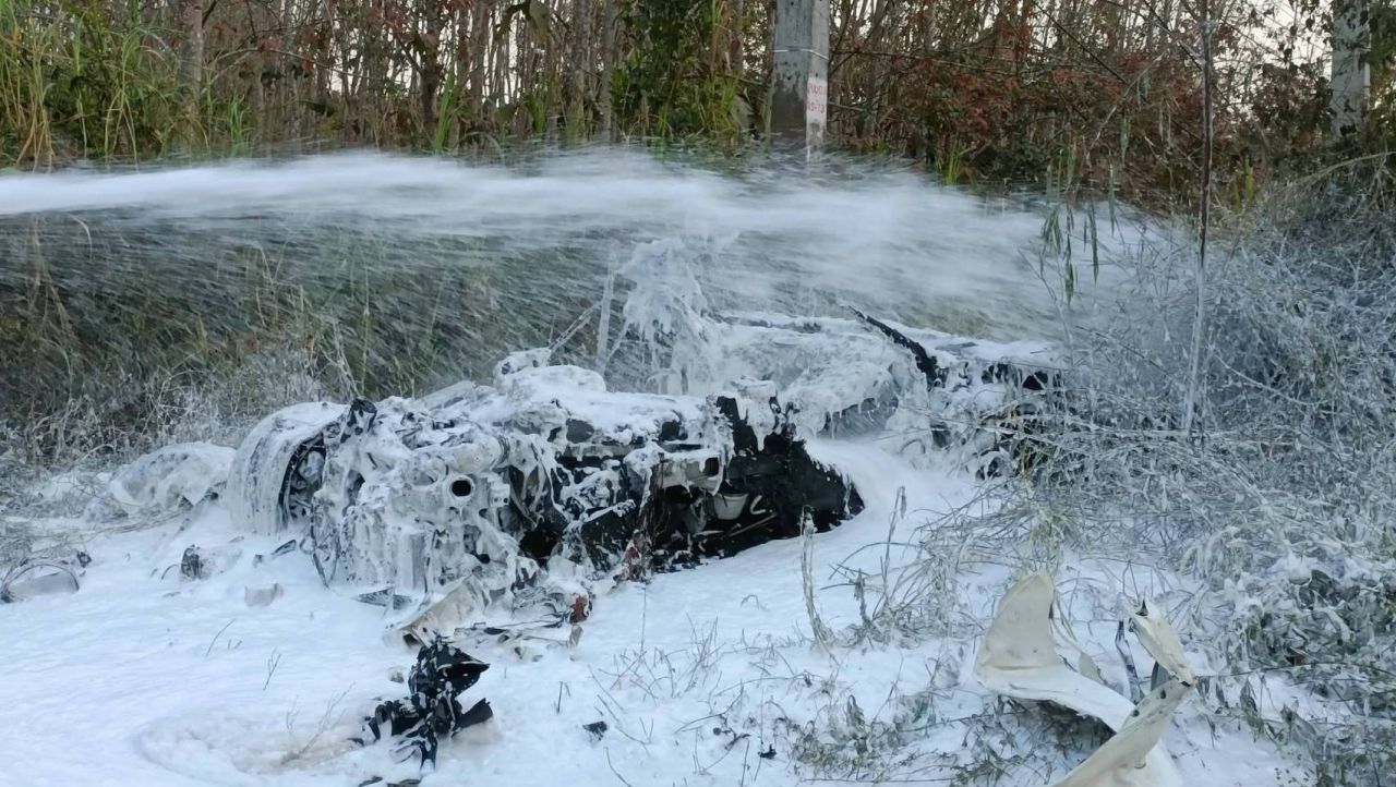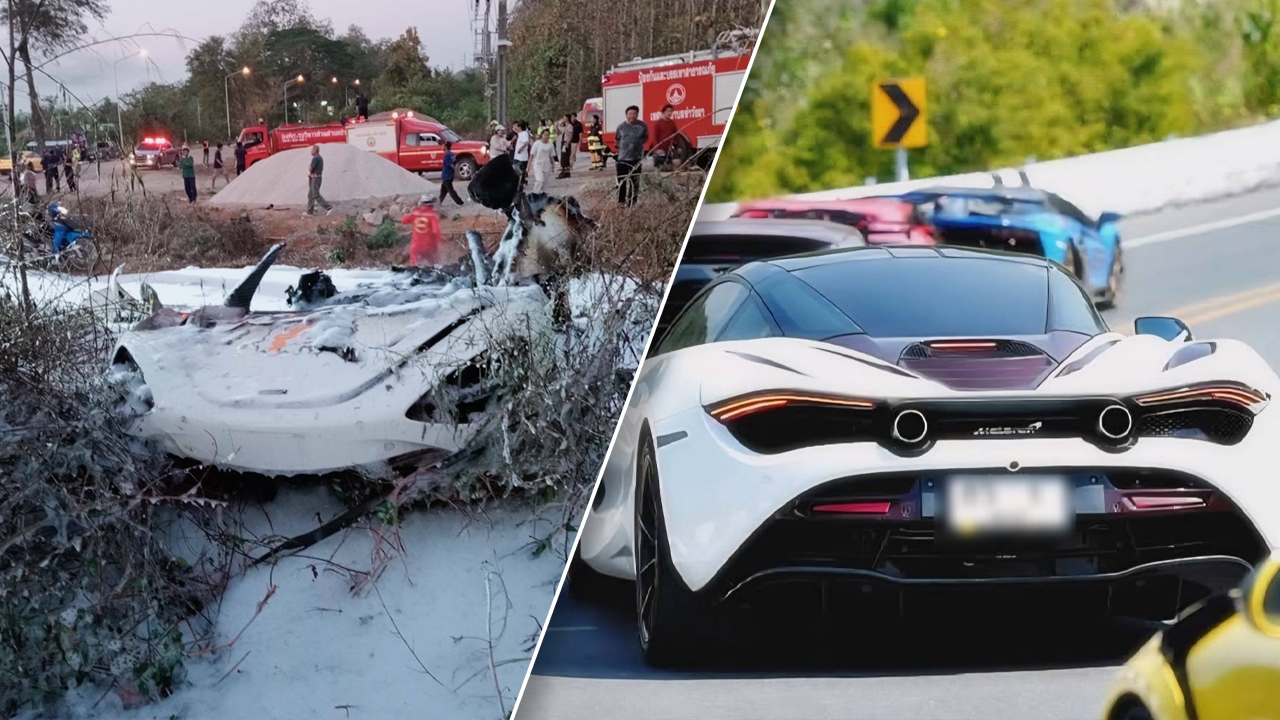 ในที่เกิดเหตุ พบรถซุปเปอร์คาร์ยี่ห้อ McLaren 720S (แมคลาเรน 720เอส) สีขาว ทะเบียน กว 1 สระบุรี ชนเสาไฟฟ้าริมถนน สภาพรถเกิดเพลิงไหม้อย่างรุนแรงจนเสียหายทั้งคัน เหลือเพียงซากเศษเหล็ก
