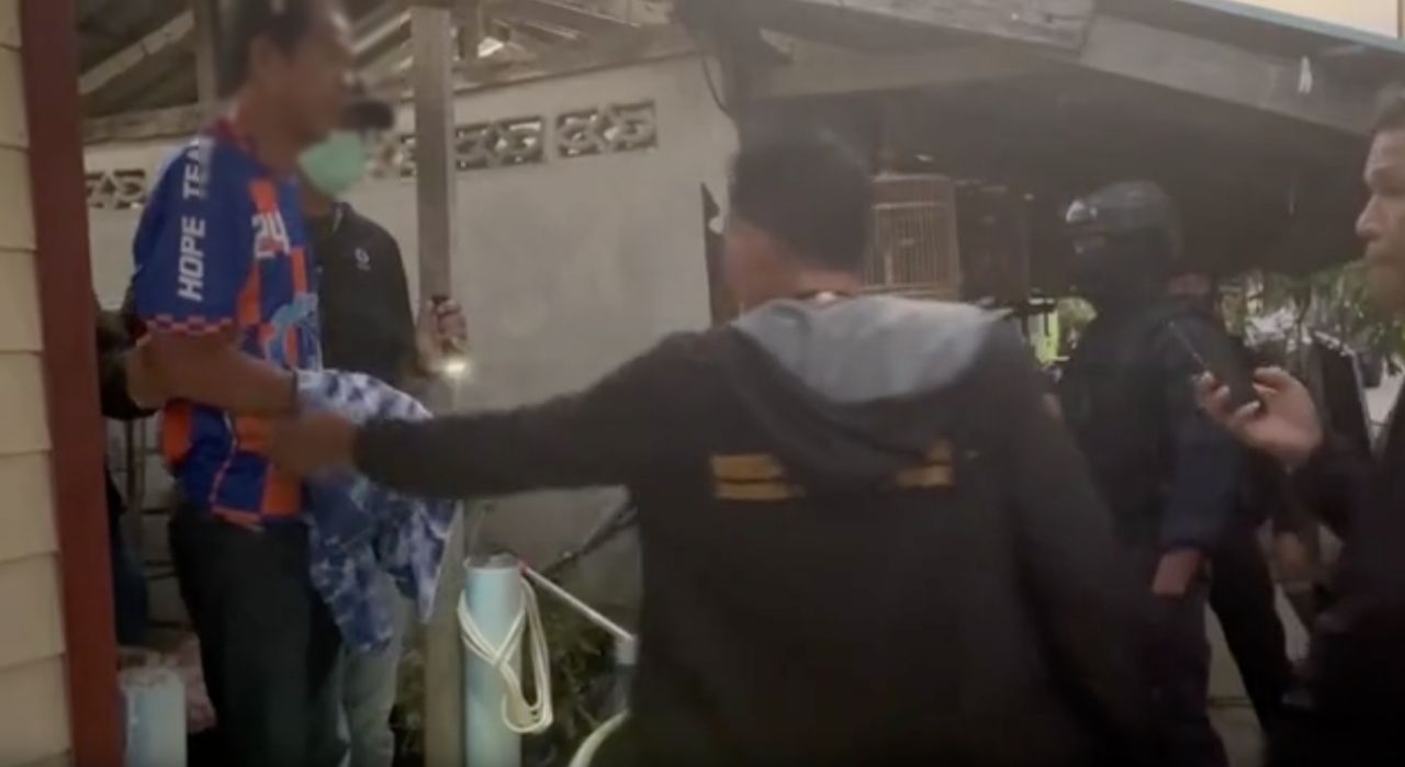 นำหมายจับของศาล จ.พัทลุง เข้าจับกุม ร.ต.ท.โกวิทย์ รัชนียะ หรือนายกวิทย์ อายุ 62 ปี ว่าที่นายก อบต.เกาะยอ อ.เมืองสงขลา อดีตตำรวจ ที่บ้านพัก ซึ่งอยู่ในหมู่บ้านแห่งหนึ่งในพื้นที่ ต.ควนลัง อ.หาดใหญ่ จ.สงขลา