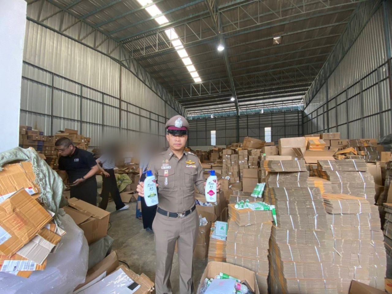 “ปอศ.-กรมทรัพย์สินทางปัญญา บุกค้นโกดังเมืองมหาชัย รวบสาวเมียนมา ร่วมกับสามีชาวจีน ปลอมแชมพู ยาสีฟัน ผลิตภัณฑ์ดูแลเส้นผม ขายราคาถูกผ่านออนไลน์ เสี่ยงอันตรายผู้บริโภค ยึดของกลางกว่า 2 แสนชิ้น”