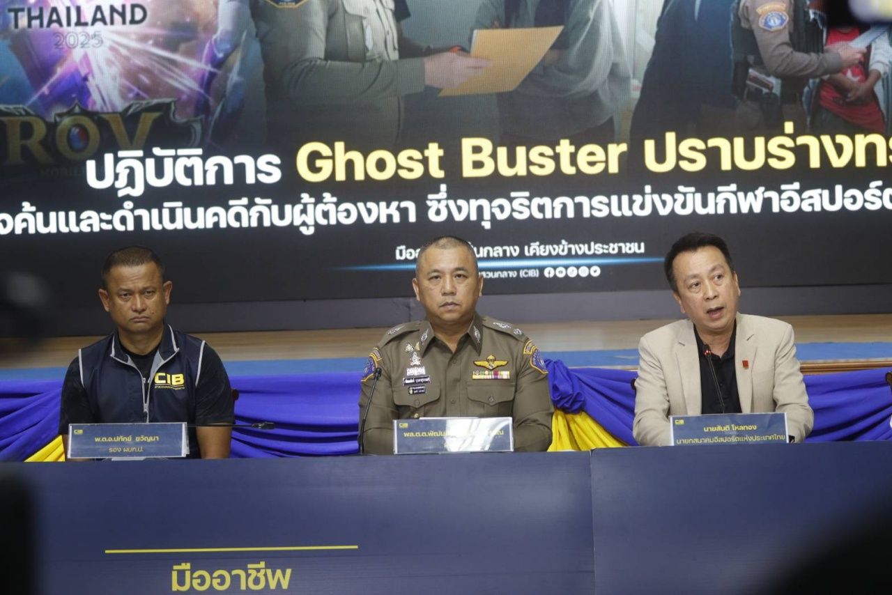 เมื่อเวลา 10.00 น. วันที่ 13 ก.พ.2569 ที่ กองบังคับการปราบปราม (บก.ป.) พล.ต.ต.พัฒนศักดิ์ บุบผาสุวรรณ ผบก.ป. พร้อมด้วย พ.ต.อ.ปทักข์ ขวัญนา รอง ผบก.ป., พ.ต.อ.ธนวัฒน์ หิ้นยกฮิ่น ผกก.5 บก.ป., พ.ต.ท.คำนวณ จันทร์อนันต์ รอง ผกก.(สอบสวน) กก.5 บก.ป., พ.ต.ต.ชนกันต์ บุรผากา สว.กก.5 บก.ป., ร.ต.อ.นนทกร นันทะน้อย รอง สว.กก.5 บก.ป. พร้อมด้วย นายสันติ โหลทอง นายกสมาคมอีสปอร์ตแห่งประเทศไทย นายภานุพงษ์ องค์คุณารักษ์ เลขาธิการ สมาคมอีสปอร์ตแห่งประเทศไทย ร่วมกันแถลงผลปฏิบัติการ “Ghost Buster ปราบร่างทรงซีเกมส์” หลังนำกำลังเข้าตรวจค้นเป้าหมาย 3 จุด ในพื้นที่ จ.นนทบุรี และ จ.นครพนม