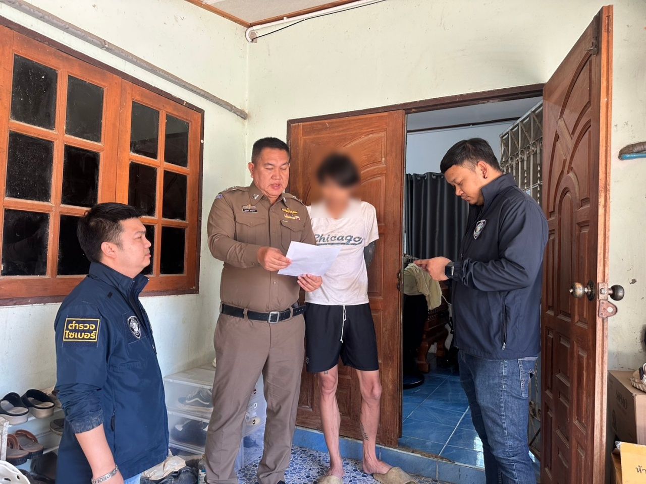 นำกำลังพร้อมหมายค้นศาลจังหวัดแพร่ ที่ 28/2569 ค้นบ้านหลังหนึ่งในพื้นที่หมู่ 5 ต.ทุ่งโฮ้ง อ.เมือง จ.แพร่ เข้าจับกุม นายณัฐชัย แสงทอง อายุ 32 ปี พร้อมตรวจยึดของกลางโทรศัพท์มือถือ 1 เครื่อง
