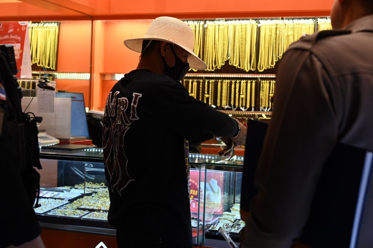 จากการสืบสวนพบว่า เมื่อวันที่ 29 ม.ค. ที่ผ่านมา ผู้ต้องหาได้เข้าไปดูลาดเลาภายในร้านทองในห้างสรรพสินค้าแห่งหนึ่งช่วงเวลาประมาณ 19.00 น. แต่ยังไม่ได้ลงมือก่อเหตุ กระทั่งวันที่ 30 ม.ค. ได้กลับมาอีกครั้งและเดินวนเวียนอยู่ภายในห้างเป็นเวลานาน ก่อนตัดสินใจก่อเหตุในช่วงเวลาประมาณ 23.00 น. เนื่องจากเห็นว่ามีประชาชนบางตา จากนั้นได้ขับขี่รถจักรยานยนต์หลบหนี พร้อมพยายามอำพรางเส้นทางและนำรถจักรยานยนต์ไปทิ้งลงคลองที่พัฒนาการ ซอย 10 เพื่อทำลายหลักฐาน