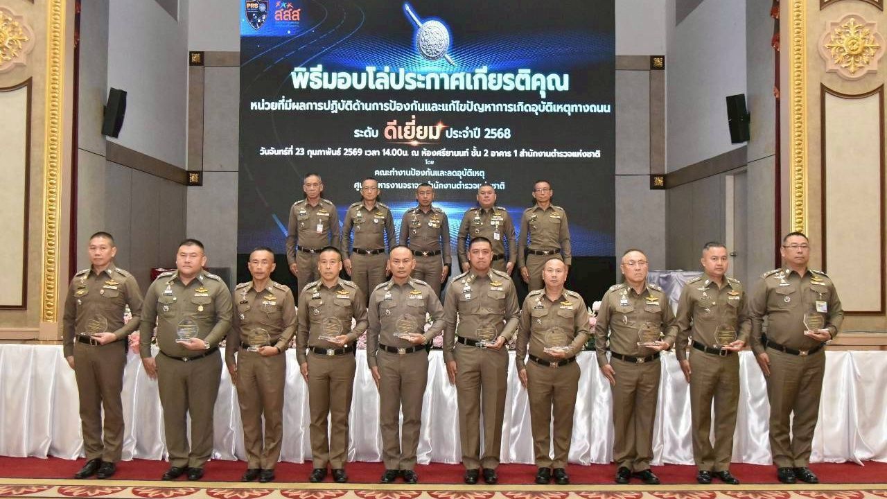 วันที่ 24 กุมภาพันธ์ 2569 พล.ต.อ.สำราญ นวลมา รองผู้บัญชาการตำรวจแห่งชาติ ในฐานะผู้อำนวยการศูนย์บริหารงานจราจร สำนักงานตำรวจแห่งชาติ เปิดเผยว่า วานนี้ พล.ต.อ.กิตติ์รัฐ พันธุ์เพ็ชร์ ผู้บัญชาการตำรวจแห่งชาติ (ผบ.ตร.) มอบหมายให้เป็นประธานในพิธีมอบโล่ประกาศเกียรติคุณให้แก่หน่วยที่มีผลการปฏิบัติด้านการป้องกันและแก้ไขปัญหาการเกิดอุบัติเหตุทางถนน ระดับดีเยี่ยม ประจำปี 2568 และประธานการประชุมบริหารงานจราจร และ ศูนย์บริหารงานจราจร สำนักงานตำรวจแห่งชาติ ครั้งที่ 2/2569