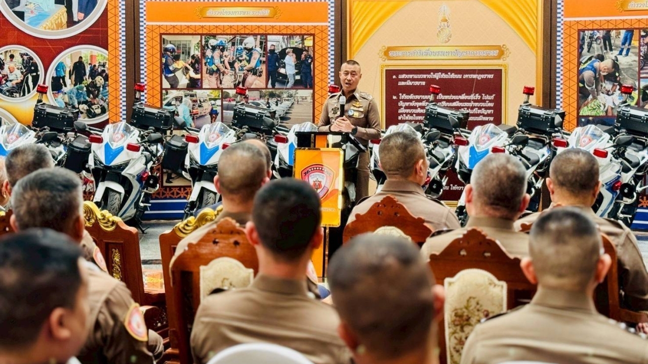พล.ต.อ.สำราญ นวลมา รอง ผบ.ตร. รับมอบรถจักรยานยนต์คุณภาพสูง สนับสนุนงานจราจรโครงการพระราชดำริ ผนึกกำลังภาคเอกชน เสริมศักยภาพงานจราจรเพื่อประชาชน