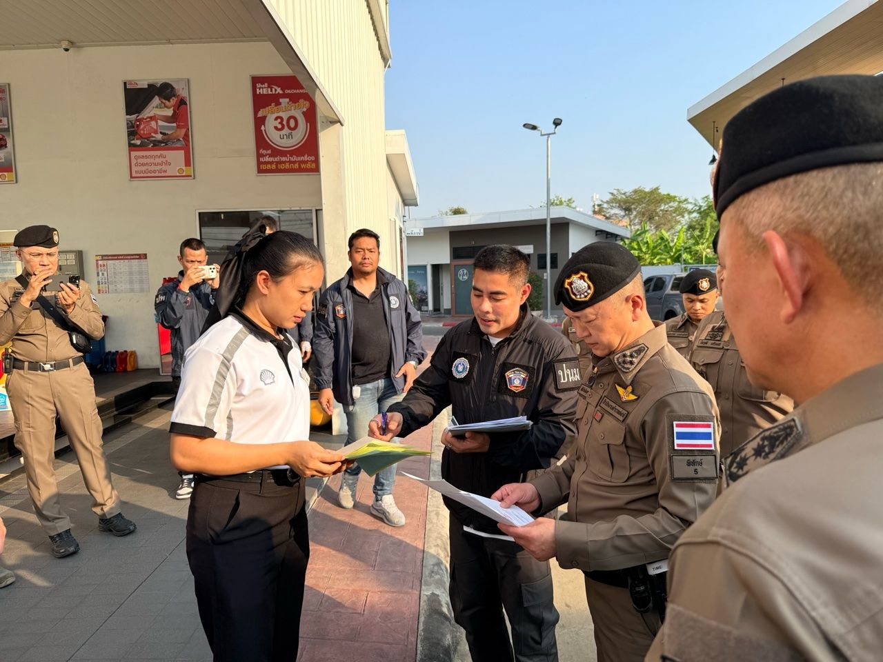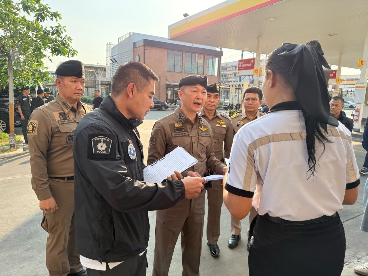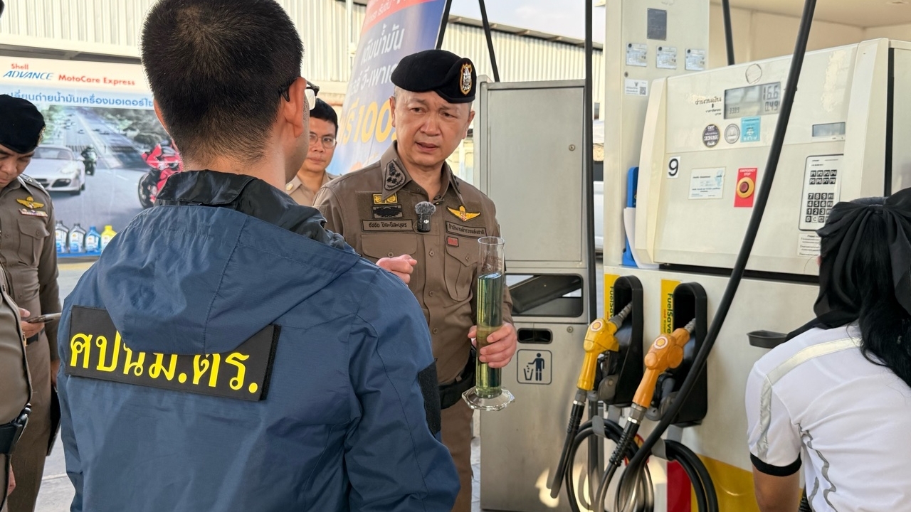 พล.ต.อ.ธัชชัย ปิตะนีละบุตร รอง ผบ.ตร. ในฐานะ ผอ.ศปนม.ตร. สุ่มตรวจปั๊มน้ำมันใน จ.นนทบุรี ป้องกันการกักตุนและโก่งราคา สั่งทั่วประเทศตรวจเข้มทุกวัน