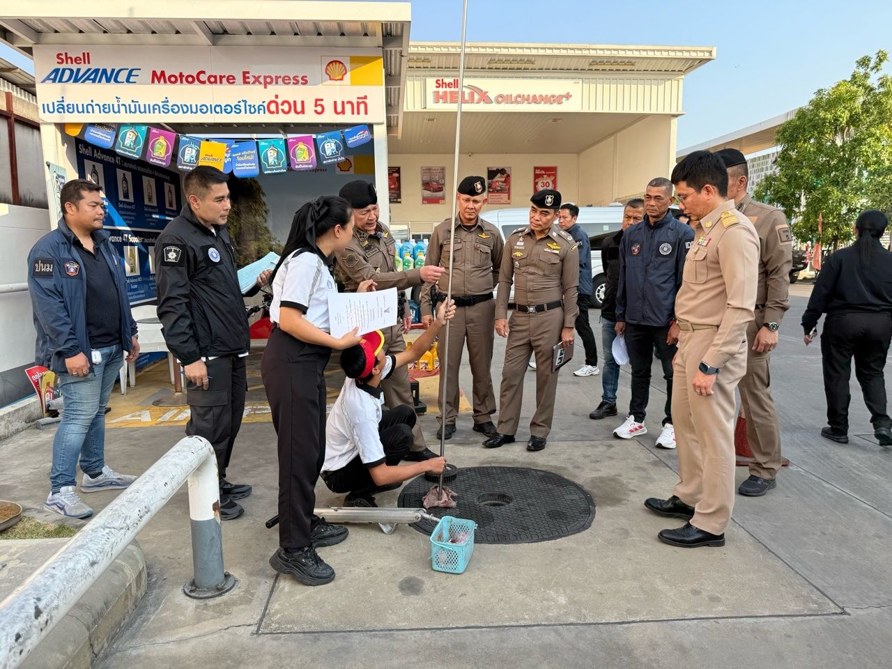 นำกำลังเข้าสุ่มตรวจสถานีบริการน้ำมันเชลล์ บริษัท เมฆเกล้า จำกัด สาขา1 ถนนติวานนท์ ต.บ้านใหม่ อ.ปากเกร็ด จ.นนทบุรี เพื่อตรวจการจัดจำหน่ายน้ำมันเชื้อเพลิงชนิดต่างๆ จากปัญหาการขาดแคลนน้ำมันไม่เพียงพอกับความต้องการของประชาชน โดยตรวจการจัดจำหน่ายน้ำมันประเภทต่างๆ รวมทั้งปริมาณน้ำมันแต่ละชนิดได้จำหน่ายออกไปในปริมาณเท่าใด อีกทั้งตรวจสอบว่ามีการกักตุนน้ำมันหรือไม่
