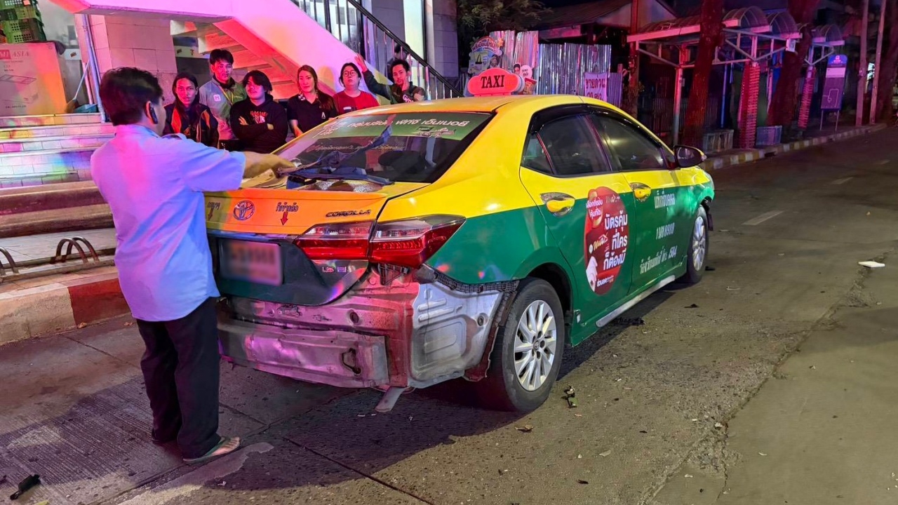 ใกล้กัน พบรถ จยย. ทะเบียน 1 ฆผ 9765 กรุงเทพมหานคร ล้มคว่ำ เป็นรถของผู้เสียชีวิต และรถแท็กซี่โตโยต้า โคโรลล่า สีเขียวเหลือง ทะเบียน 1 มข 8988 กรุงเทพมหานคร รถคู่กรณี ด้านหน้ารถมุมขวาพังยับ กันชนท้ายหลุด