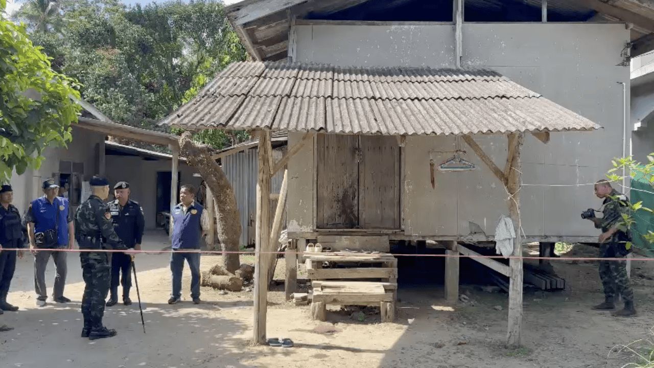 เมื่อถึงจุดเกิดเหตุ พบเป็นบ้านไม้ยกพื้นชั้นเดียว โดยที่บริเวณประตูห้องครัวด้านซ้ายมือ มีเสื่อและหมอนปูราบไว้ที่พื้น มีร่องรอยของกองเลือดจำนวนหนึ่งตกอยู่ และที่บริเวณประตูบ้านพักด้านหน้า มีคราบเลือดตกกระจัดกระจายไปถึงบันไดรวมทั้งพื้นเป็นกองใหญ่จำนวน 3 กอง