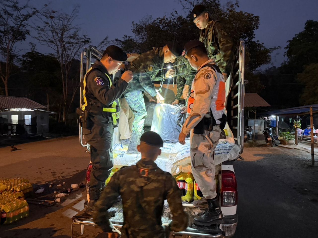 เมื่อเวลา 19.00 น.วันที่ 4 เมษายน 2569 พลตรี ณัฏฐพงศ์ อัศวินวงศ์ ผู้บัญชาการกองพลทหารราบที่ 9 ในฐานะ ผู้บัญชาการกองกำลังสุรสีห์ บูรณาการร่วมกับ นางสาววริษฐา สงวนเสริมศรี ผู้ว่าราชการจังหวัดกาญจนบุรี พล.ต.ต.พศวีร์ เรืองภู่ ผบก.ภ.จว.กาญจนบุรี ได้รับแจ้งจากแหล่งข่าวว่า มีขบวนการลักลอบขนลำเลียงน้ำมันเชื้อเพลิงโดยซุกซ่อนไปกับสินค้าที่จะนำส่งออกไปประเทศเพื่อนบ้าน