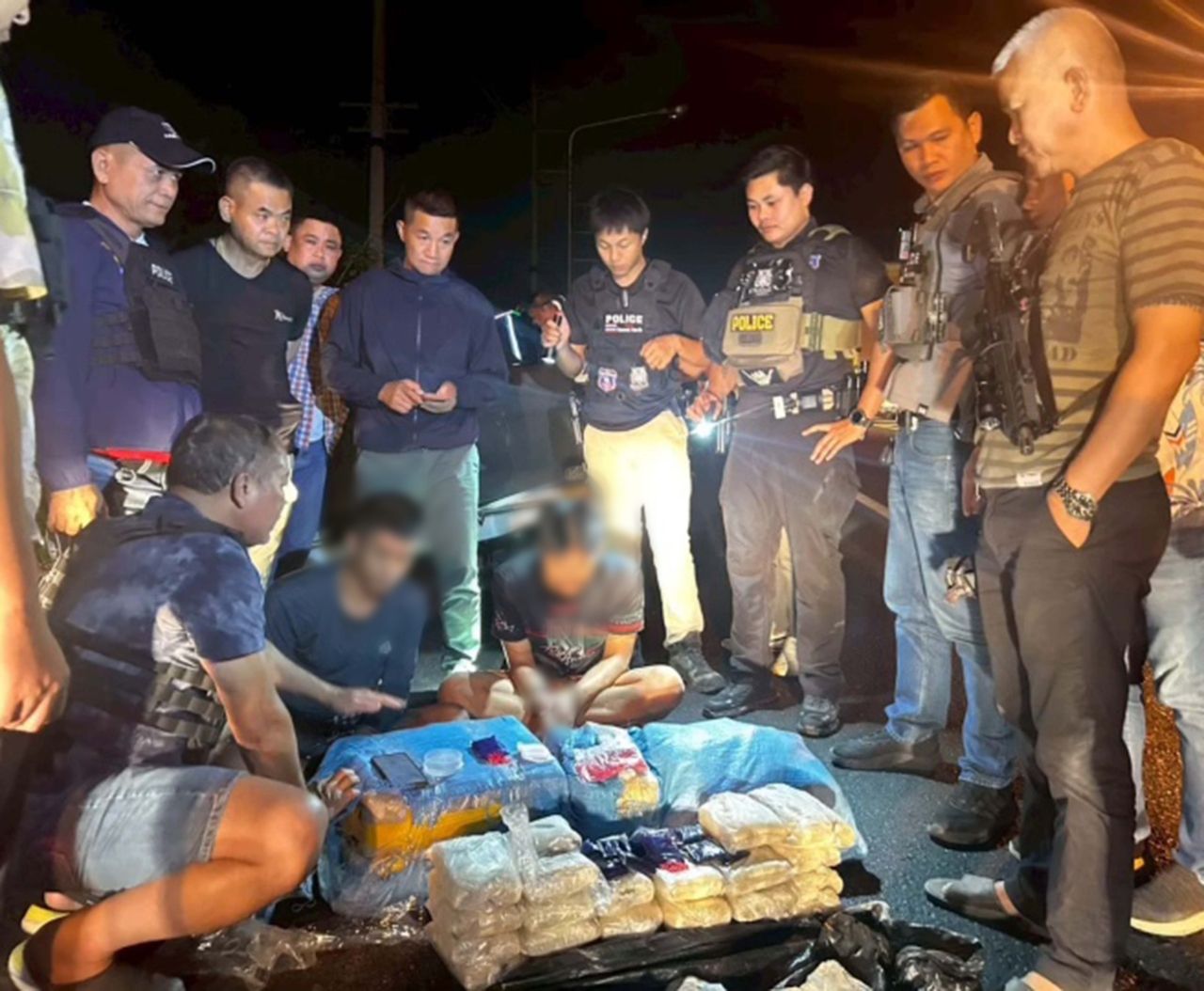 จนกระทั่งเวลา 24.00 น.คืนวันที่ 10 เม.ย. ที่ผ่านมา เจ้าหน้าที่ตำรวจพบรถยนต์กระบะยี่ห้อโตโยต้า สีขาว ทะเบียนขอนแก่น ขับอยู่บนถนนสายท่าพระ ไป อ.โกสุมพิสัย จ.มหาสารคาม พื้นที่บ้านหนองโข่ย ต.ท่าพระ อ.เมือง จ.ขอนแก่น ที่กระบะท้ายรถบรรทุกกระสอบปุ๋ยสีฟ้าเอาไว้ จึงได้สกัดรถคันดังกล่าวเอาไว้ พบ นายเบนซ์กับนายชินกร นั่งอยู่ในรถ ส่วนกระสอบที่กระบะท้ายรถบรรจุหีบห่อยาบ้าเอาไว้ นับได้รวม 540,000 เม็ด จึงควบคุมตัวทั้ง 2 คนเอาไว้ สอบสวนขยายผล