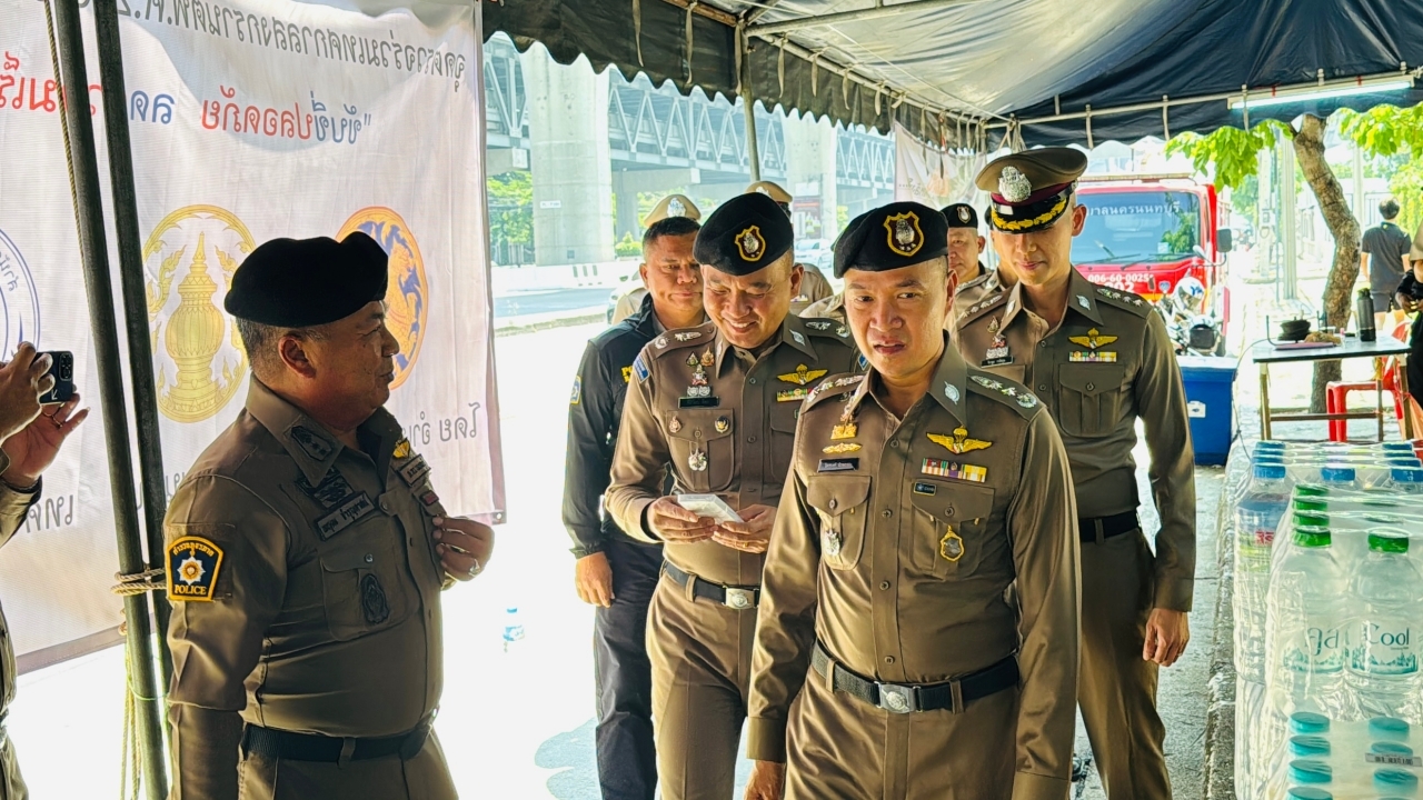 เมื่อเวลา 10.00 น.วันที่ 12 เม.ย.69 พล.ต.ท.ไตรรงค์ ผิวพรรณ รองจเรตำรวจแห่งชาติ ในฐานะโฆษกสำนักงานตำรวจแห่งชาติ (โฆษก ตร.) พล.ต.ต.ศิริวัฒน์ ดีพอ ผบก.สอท.1 รองโฆษกสำนักงานตำรวจแห่งชาติ พ.ต.อ.จิรายุส วานิชกูล รอง ผบก.ภ.จ.นนทบุรี พ.ต.อ.พฤฒ จำรูญศาสตร ผกก.สภ.รัตนาธิเบศร์ จ.นนทบุรี เดินทางมาตรวจเยี่ยมศูนย์บริการประชาชน ช่วงเทศกาลสงกรานต์ หน้าสถานีดาวเทียมไทยคม นนทบุรี ถนนรัตนาธิเบศร์ ต.บางกระสอ อ.เมืองนนทบุรี โดยมีกำลังเจ้าหน้าที่ตำรวจ เจ้าหน้าที่อำเภอเมืองนนทบุรี เจ้าหน้าที่เทศบาลนครนนทบุรี คอยให้บริการประชาชน