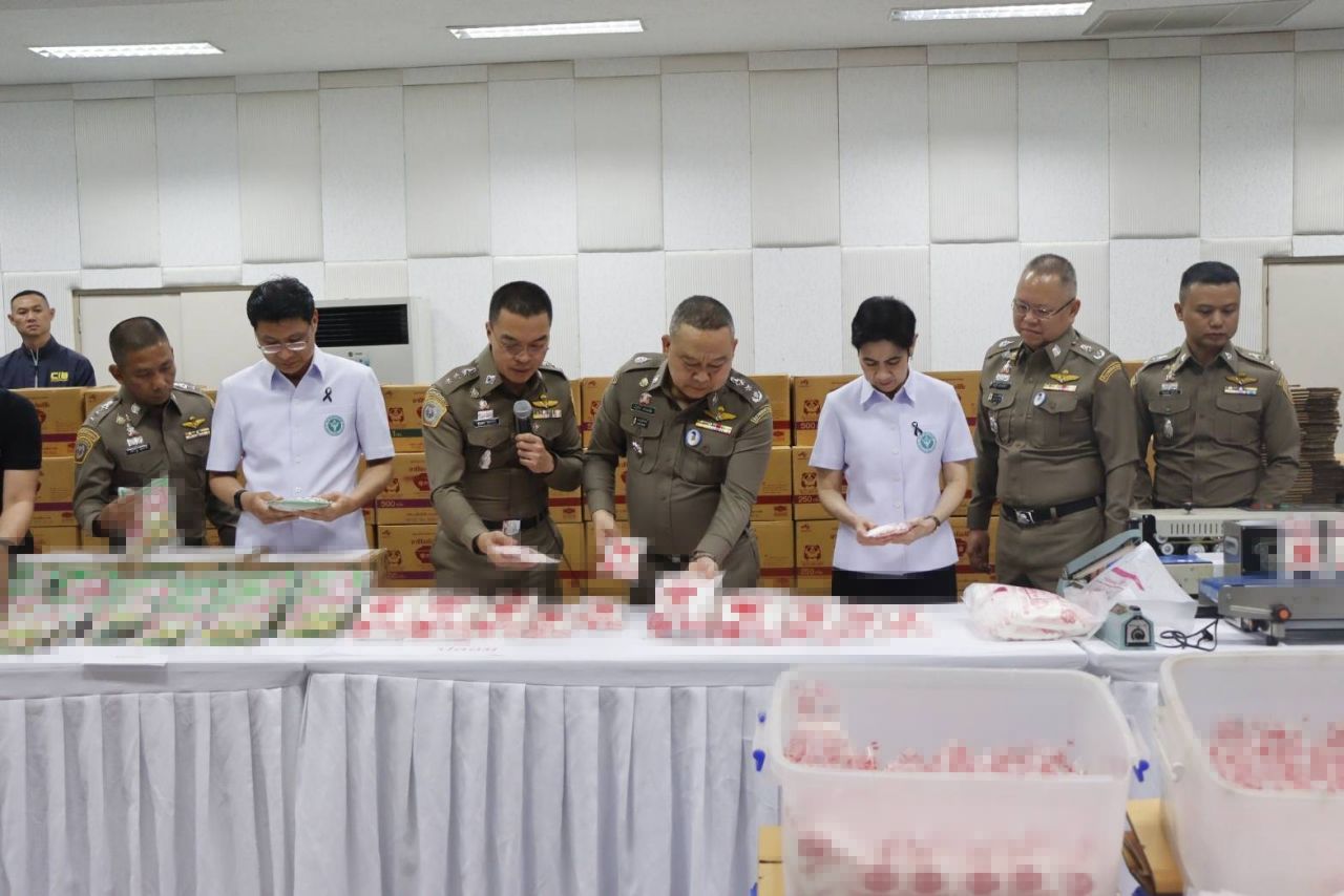 วันที่ 17 เมษายน ที่ห้องประชุมชั้น 2 กองบัญชาการตำรวจสอบสวนกลาง (บช.ก.) พล.ต.ท.ณัฐศักดิ์ เชาวนาศัย ผบช.ก. พล.ต.ต.ทัศน์ภูมิ จารุปรัชญ์ ผบก.ปอศ.,พ.ต.อ.ภัทราวุธ อ่อนช่วย รอง ผบก.ปอศ. พ.ต.อ.ภูวเดช จุลกะเสวี ผกก.1 บก.ปอศ. พ.ต.ท.วิวัฒนชัย คลื่นแก้ว รอง ผกก.1 บก.ปอศ. พร้อมด้วย ภญ.สุภัทรา บุญเสริม เลขาธิการคณะกรรมการอาหารและยา และ ภก.เลิศชาย เลิศวุฒิ รองเลขาธิการฯ ร่วมกันแถลงผลปฏิบัติการ Take Down ขบวนการผลิต “ผงชูรส-ผงปรุงรสปลอม” รายใหญ่ หลังขยายผลจับกุมเครือข่ายข้ามจังหวัด ตรวจยึดของกลางล็อตใหญ่ มูลค่าเกือบ 2 ล้านบาท