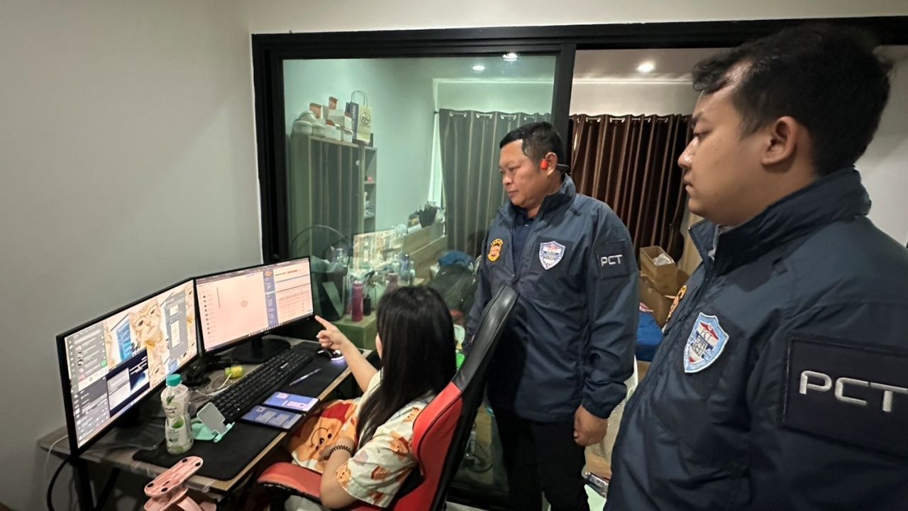 จุดที่สอง ชุดสืบสวนนำกำลังพร้อมหมายค้นศาลจังหวัดนนทบุรี ที่ 369/2569 ค้นห้องพักในคอนโดมิเนียมหรู พื้นที่หมู่ 1 ถนนแจ้งวัฒนะ ต.คลองเกลือ อ.ปากเกร็ด จ.นนทบุรี เข้าจับกุม น.ส.กรรณิกา ญาณไตรรัตน์ อายุ 25 ปี ชาว จ.ชัยนาท พร้อมตรวจยึดของกลาง โน้ตบุ๊ก 1 เครื่อง คอมพิวเตอร์ 2 เครื่อง โทรศัพท์มือถือ 2 เครื่อง และเร้าเตอร์อินเตอร์เน็ต 1 เครื่อง