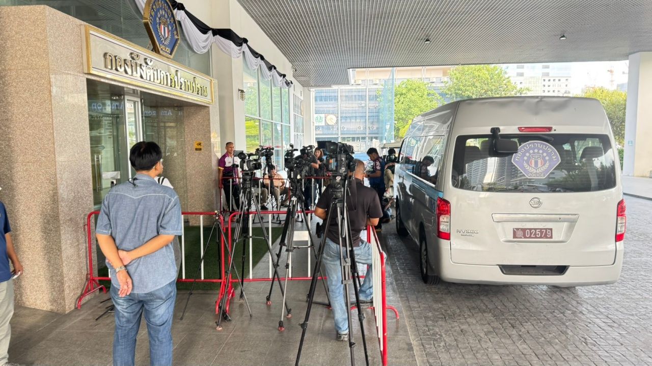 กองปราบนำตัว “อัจฉริยะ” พร้อมพวก ตบทรัพย์ ผกก.ห้องกัก ตม. ไปส่งศาลฝากขัง นักข่าวรอเก้อ พาออกด้านหลังอาคารจอดรถ
