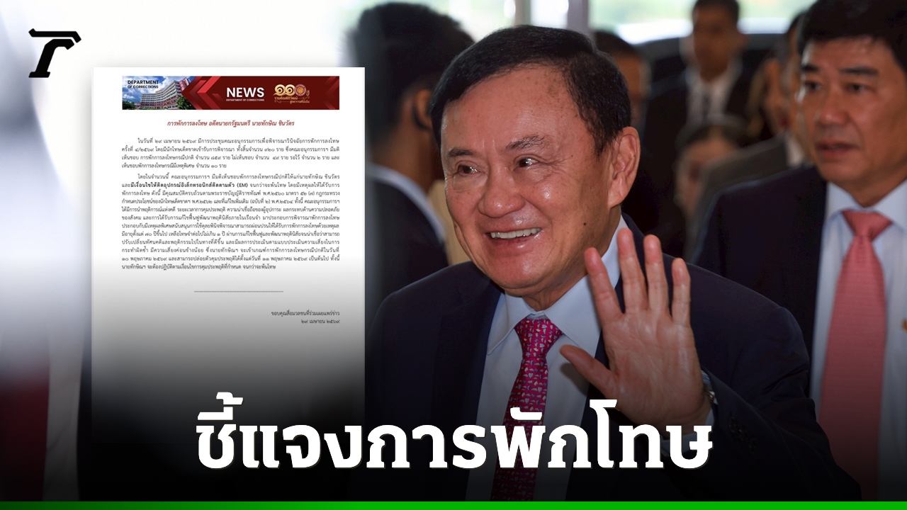 "กรมราชทัณฑ์" ออกเอกสารชี้แจง การพักการลงโทษ "ทักษิณ ชินวัตร" คณะอนุกรรมการฯ มีมติเห็นชอบพักการลงโทษกรณีปกติ และมีเงื่อนไขให้ติดอุปกรณ์อิเล็กทรอนิกส์ติดตามตัว (EM) จนกว่าจะพ้นโทษ