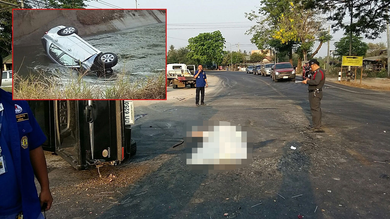 ห่างจากจุดเกิดเหตุ ลงไปในคลองชลประทานริมถนน พบรถยนต์เก๋ง โตโยต้าอัลติส สีบรอนซ์เงิน หมายเลขทะเบีบน กต 1716 กาญจนบุรี จอดอยู่ในสภาพด้านหน้าพังเสียหาย พลิกตะแคงขวา พบร่างผู้เสียชีวิต เป็นผู้ชาย ทราบชื่อ นายราเชน ภูภักดีพันธ์ อายุ 29 ปี ชาว อ.ปากพนัง จ.นครศรีธรรมราช ซึ่งเป็นคนขับรถเก๋งคันดังกล่าว หลังเกิดเหตุชาวบ้านที่เห็นเหตุการณ์ ได้กระโดดลงไปช่วยนำร่างขึ้นมาไว้บนถนน แต่ก็พบว่าเสียชีวิตแล้ว
