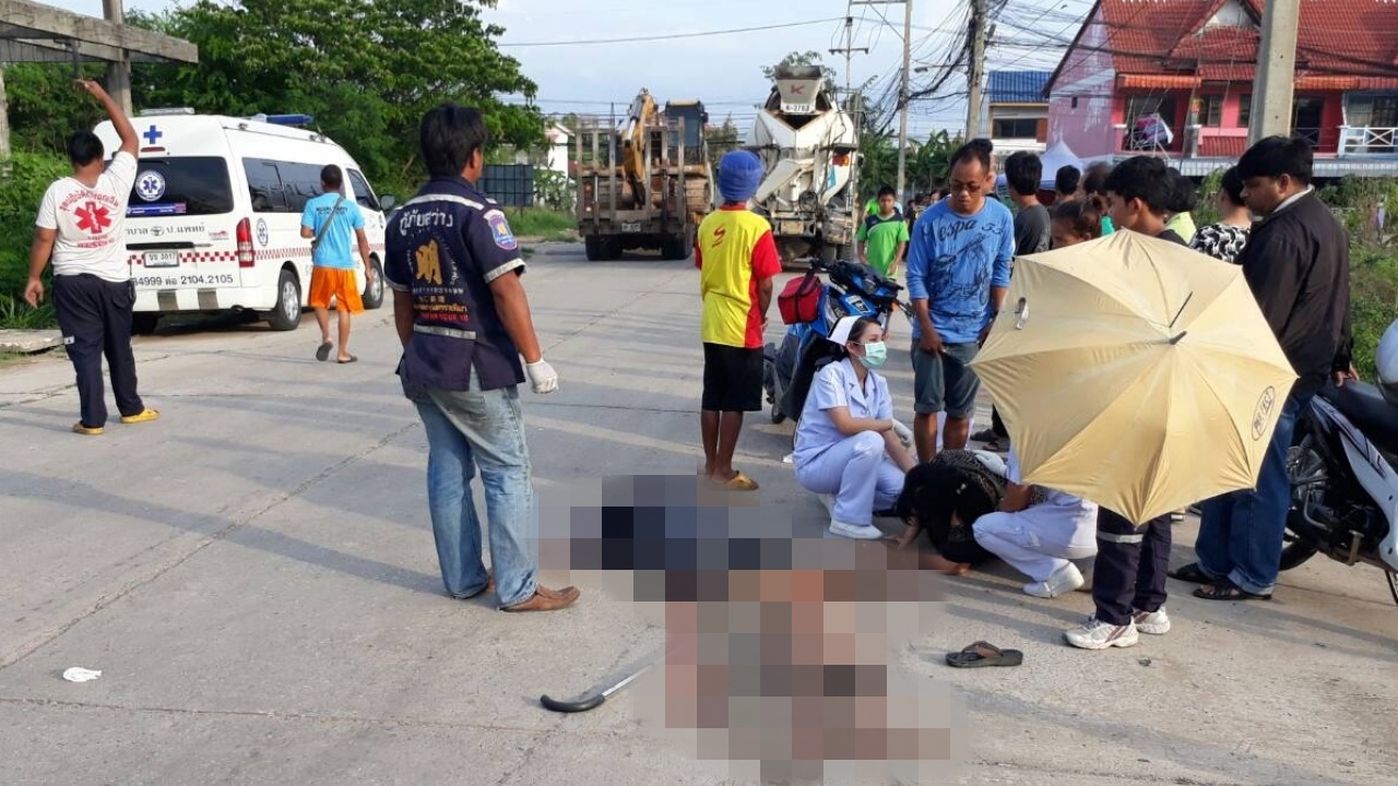 หนุ่มขับรถผสมปูนรู้สึกเหมือนเหยียบบางอย่าง ชาวบ้านตะโกนร้องบอกรีบจอดลงมาดู แทบช้อก พบศพยายชาวโคราช วัย 72 ปี ถูกล้อทับร่างเละขณะเดินออกกำลังกาย ญาติเข้ากอดศพร้องไห้แทบขาดใจ คาด คนขับรีบออกรถไม่ทันระวัง...