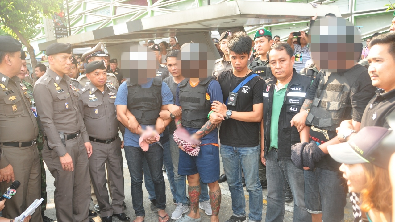 เมื่อวันที่ 25 เม.ย. 60 พล.ต.อ.เฉลิมเกียรติ ศรีวรขาน รอง ผบ.ตร. ร่วมกับ พล.ต.ต.สุรพล วิรัตน์โยสินทร์ รอง ผบช.ภ.2 พล.ต.ต.สมประสงค์ เย็นท้วม ผบก.ภ.จว.ชลบุรี พ.ต.อ.เชี่ยวชาญ เพิ่มพูล ผกก.สภ.แสนสุข และ พ.ต.ท.ธีรวัฒน์ จันทร์ศรีเพชร รอง ผกก.หัวหน้าพนักงานสอบสวน สภ.แสนสุข แถลงข่าวจับกุมผู้ต้องหาในคดียิงกันจนทำให้มีผู้บาดเจ็บสาหัส 4 ราย ช่วงสงกรานต์วันไหลบางแสน เมื่อวันที่ 18 เม.ย. ที่ผ่านมา (โจ๋กราดยิงอริ สาหัส 4 วงจรปิดชัดกระสุนเจาะหัวสาว ส่งท้ายวันไหลบางแสน) โดยผู้ต้องหา 3 คน ประกอบด้วย นายสนธยา แสงสนธิ์ อายุ 28 ปี นายวจนะ ภูทอง อายุ 28 ปี และ นายยูซีล อัลโอเมด อายุ 27 ปี พร้อมอาวุธปืนขนาด 9 มม. 1 กระบอก กระสุน 24 นัด ปืนขนาด 11 มม. 1 กระบอก แมกกาซีนบรรจุกระสุน 2 แมกกาซีน และยาอี 210 เม็ด
