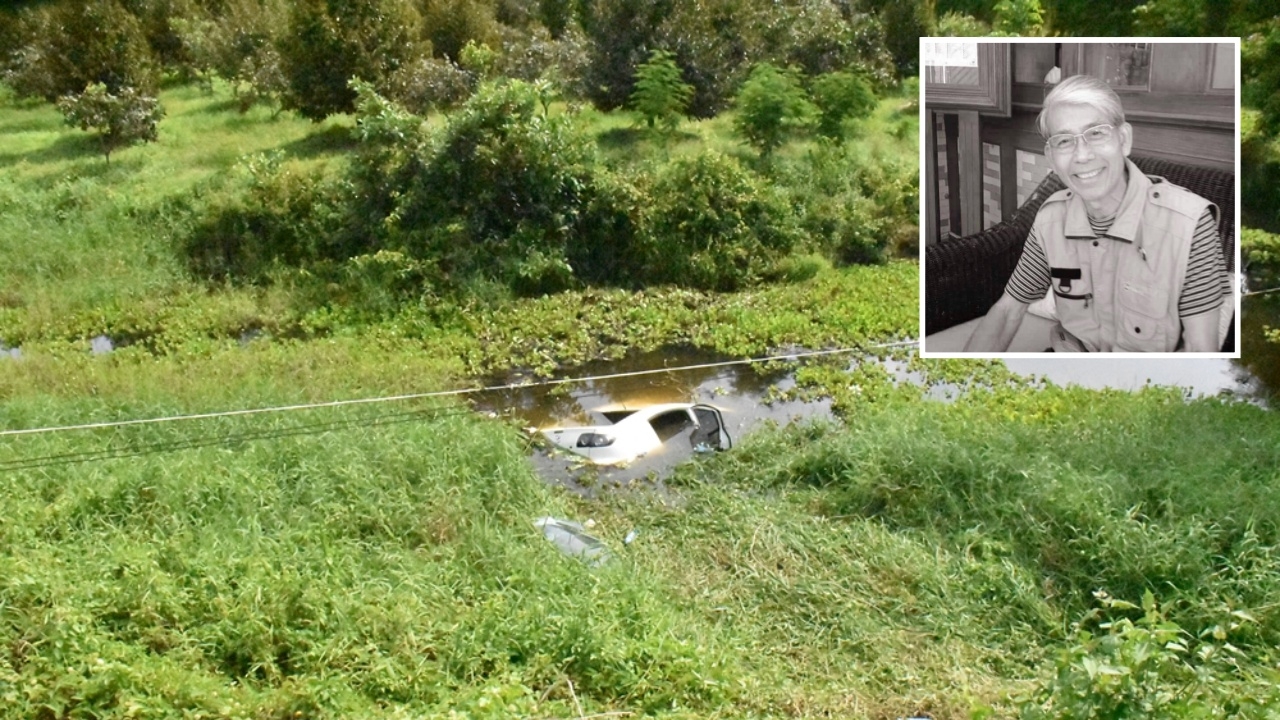 อดีตคณบดีคนแรกของคณะเทคโนโลยีอุตสาหกรรม มรภ.รำไพพรรณี วัย 70 ปี หักหลบเก๋งสวนทางช่วงทางโค้ง เสียหลักพลิกคว่ำหลายตลบตกคลองล้อชี้ฟ้า จนท.รุดช่วยนำร่างออกจากรถปั๊มหัวใจ น่าเศร้า ช่วยไว้ไม่ทัน