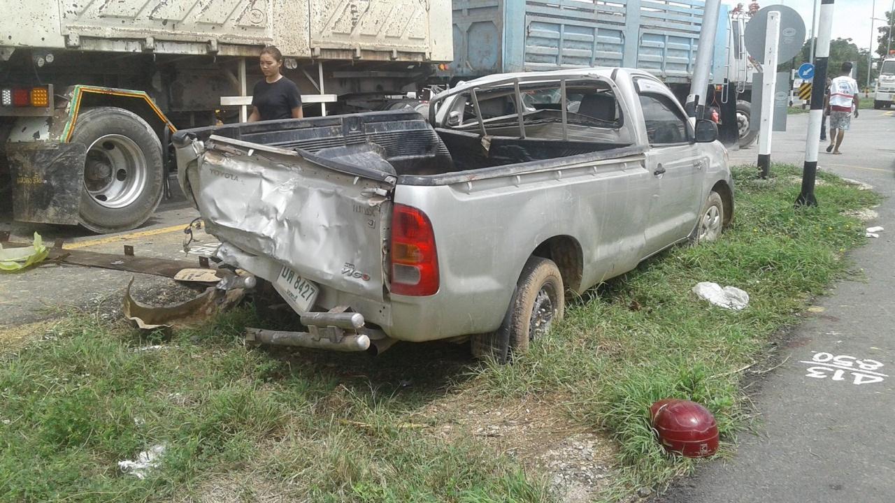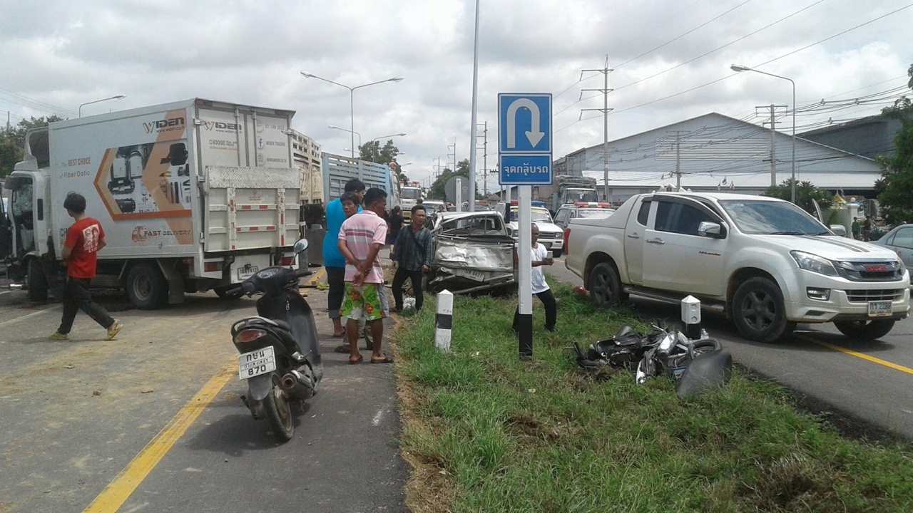 เจ้าหน้าที่สอบถามพยานเบื้องต้นทราบว่า รถพ่วงและรถกระบะกำลังรอกลับรถ ส่วนรถจักรยานยนต์และรถบรรทุกเล็กขับขี่มาในทิศทางเดียวกัน ก่อนได้เฉี่ยวชนกันและกระเด็นมาเฉี่ยวชนรถที่รอกลับรถ จากนี้จะได้ดำเนินการในส่วนที่เกี่ยวข้องและสอบปากคำถึงสาเหตุที่แท้จริงต่อไป.