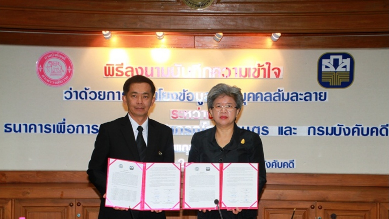 กรมบังคับคดีร่วมกับธนาคารเพื่อการเกษตรและสหกรณ์การเกษตร ลงนามบันทึกความเข้าใจว่าด้วยการเชื่อมโยงข้อมูลบุคคลล้มละลาย