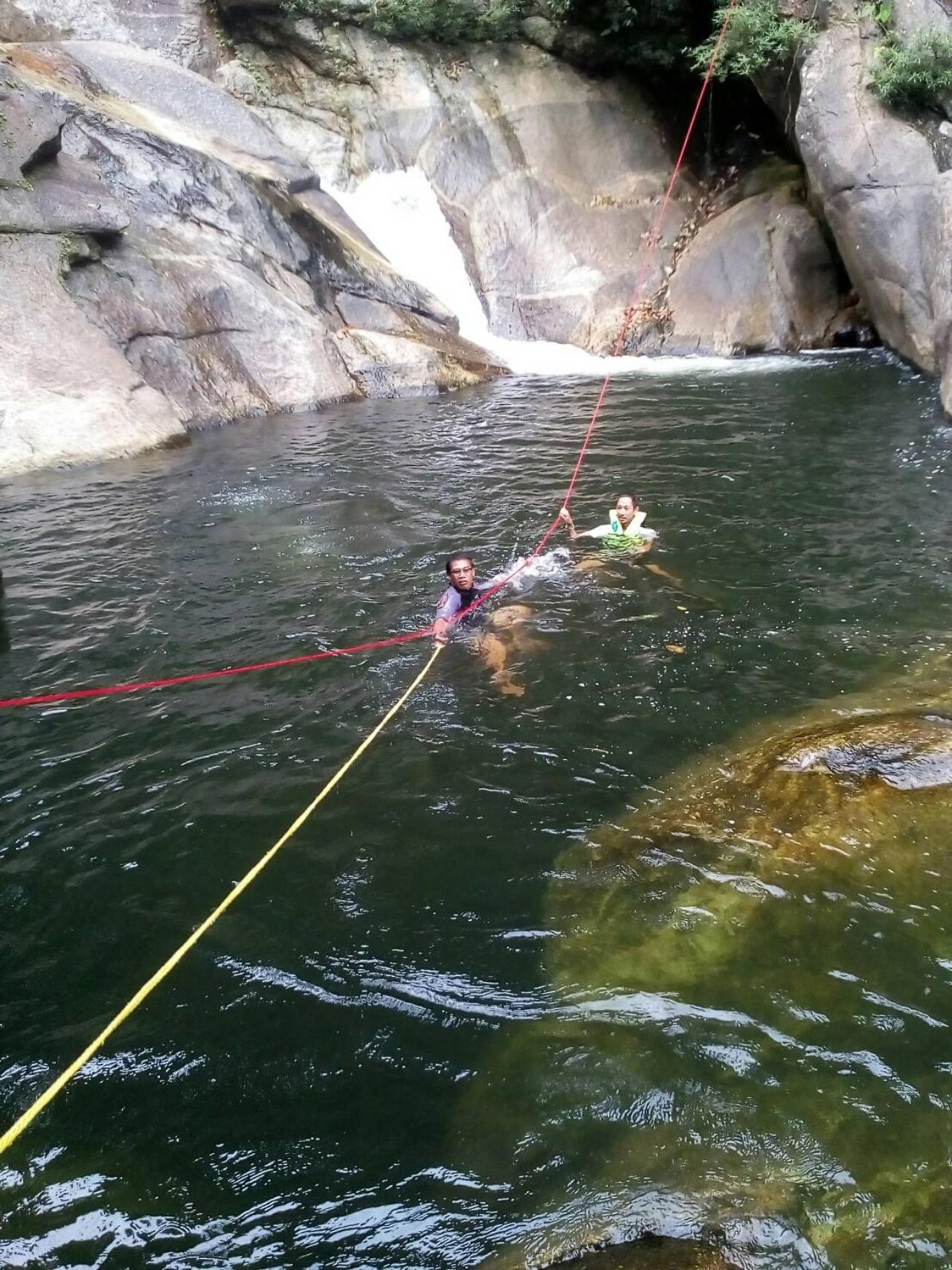 ที่เกิดเหตุเป็นชั้นบนสุดของน้ำตก พบชาวบ้านและเจ้าหน้าที่อุทยานกำลังช่วยกันงมหาร่างของผู้จมน้ำ จากนั้นอาสาสมัครชุดประดาน้ำของมูลนิธิใต้เต็กตึ๊ง ร่วมงมหาร่างผู้สูญหาย ใช้เวลาพักใหญ่จึงพบจมอยู่ก้นแอ่งที่ความลึกประมาณ 4 เมตร และเสียชีวิตแล้ว ทราบชื่อ สามเณรวีระพงษ์ พิทักษ์ อายุ 17 ปี เป็นนักเรียนชั้น ม.5 ของโรงเรียนแห่งหนึ่ง จึงนำศพส่งชันสูตรที่ รพ.ลานสกา