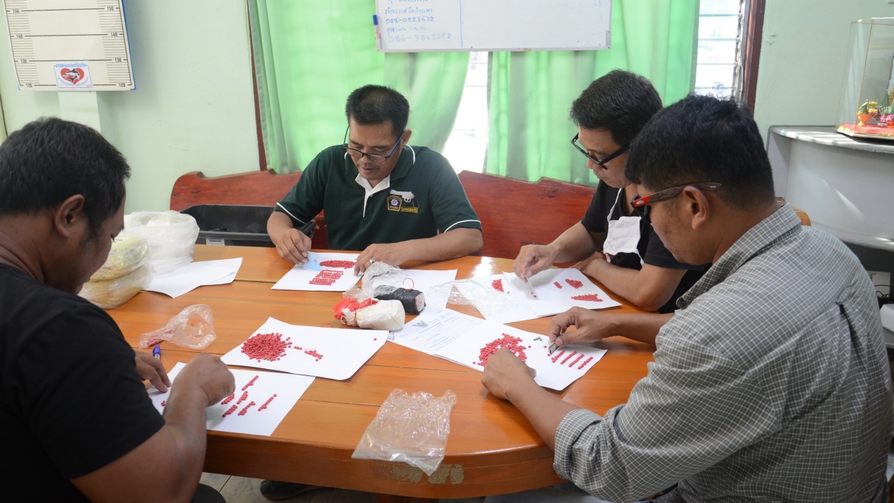 ที่เกิดเหตุอยู่ห่างจากถนนสายทองเอน–แหลมทอง ห่างจากถนนใหญ่ประมาณ 50 เมตร เป็นบริเวณกอไผ่ข้างทางพบกล่องพลาสติก ขนาด 30x50 ซม. จากการตรวจสอบเบื้องต้น พบยาไอซ์บรรจุถุง จำนวน 5 ถุง น้ำหนักรวม 4.977 กก. และยาบ้า 95,480 เม็ด