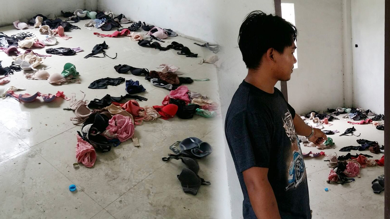 โดยเมื่อผู้สื่อข่าวเดินทางเข้าไปภายในห้องพักชั้นสองของตัวบ้าน ถึงกับผงะ พบชุดชั้นในสตรี ทั้งยกทรงและกางเกงในนับร้อยตัวถูกทิ้งไว้เกลื่อนเต็มห้อง โดยมีกางเกงในชายปะปนอยู่ไม่กี่ตัว