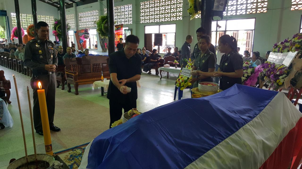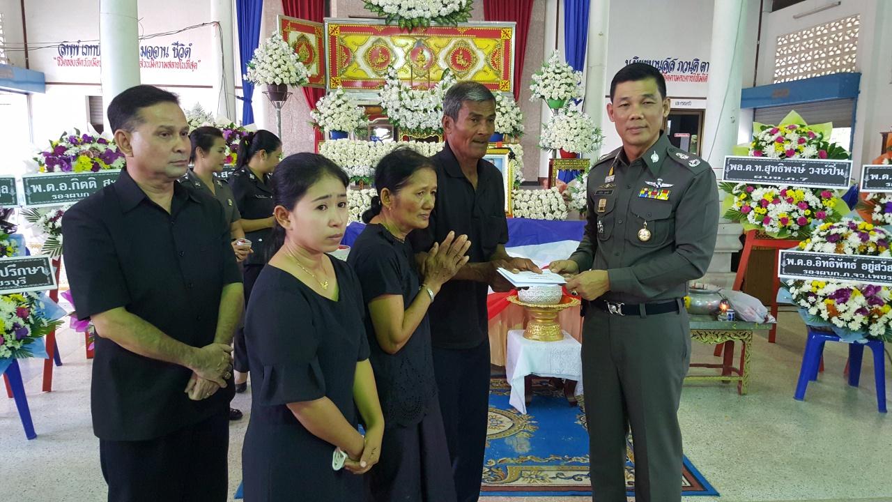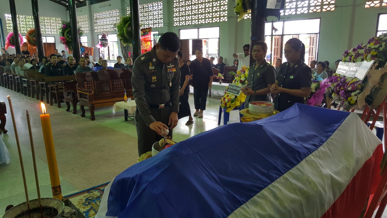 ผู้การฯ เพชรบุรี ร่วมรองพ่อเมือง เป็นประธานรดน้ำศพ ส.ต.ท. ควบจักรยานยนต์สายตรวจไล่ตามรถต้องสงสัย เตรียมขอปูนบำเหน็จ เพื่อนร่วมงานเผยเป็นตำรวจน้ำดี ด้านภรรยาวอนช่วยเหลือครอบครัวขาดเสาหลัก