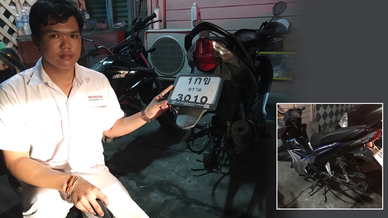 ที่เกิดเหตุอยู่หลังโรงแรมมารวย การ์เด้น บริเวณหน้าหอพักไม่มีชื่อ พบรถจักรยานยนต์ ยี่ห้อฮอนด้า รุ่นเวฟไอ สีเทา-น้ำเงิน ทะเบียน 1กข 3010 ตราด มีสภาพล้อหน้า และล้อหลังหายไป ซึ่งจอดอยู่ริมถนนหน้าหอพัก โดยมีนายกิตติชัย สัมมา อายุ 20 ปี อาชีพพนักงานช่างซ่อม ของบริษัทฮอนด้า ย่านนิคมอุตสาหกรรมลาดกระบัง ซึ่งเป็นเจ้าของรถดังกล่าวยืนรอให้การกับเจ้าหน้าที่ตำรวจ