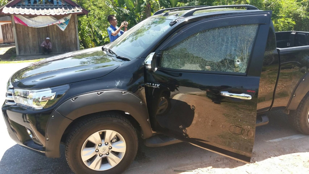 ชายวัย 37 ปี ขับกระบะพาครอบครัวกลับจากเยี่ยมญาติในปัตตานี เจอคนร้ายขี่มอเตอร์ไซค์ประกบรัวกระสุนนับสิบนัดใส่ คนขับและพ่อนั่งข้างบาดเจ็บ ส่วนลูกวัย 3 ขวบและภรรยาปลอดภัย โชคดีทหารผ่านมาช่วยยิงตอบโต้