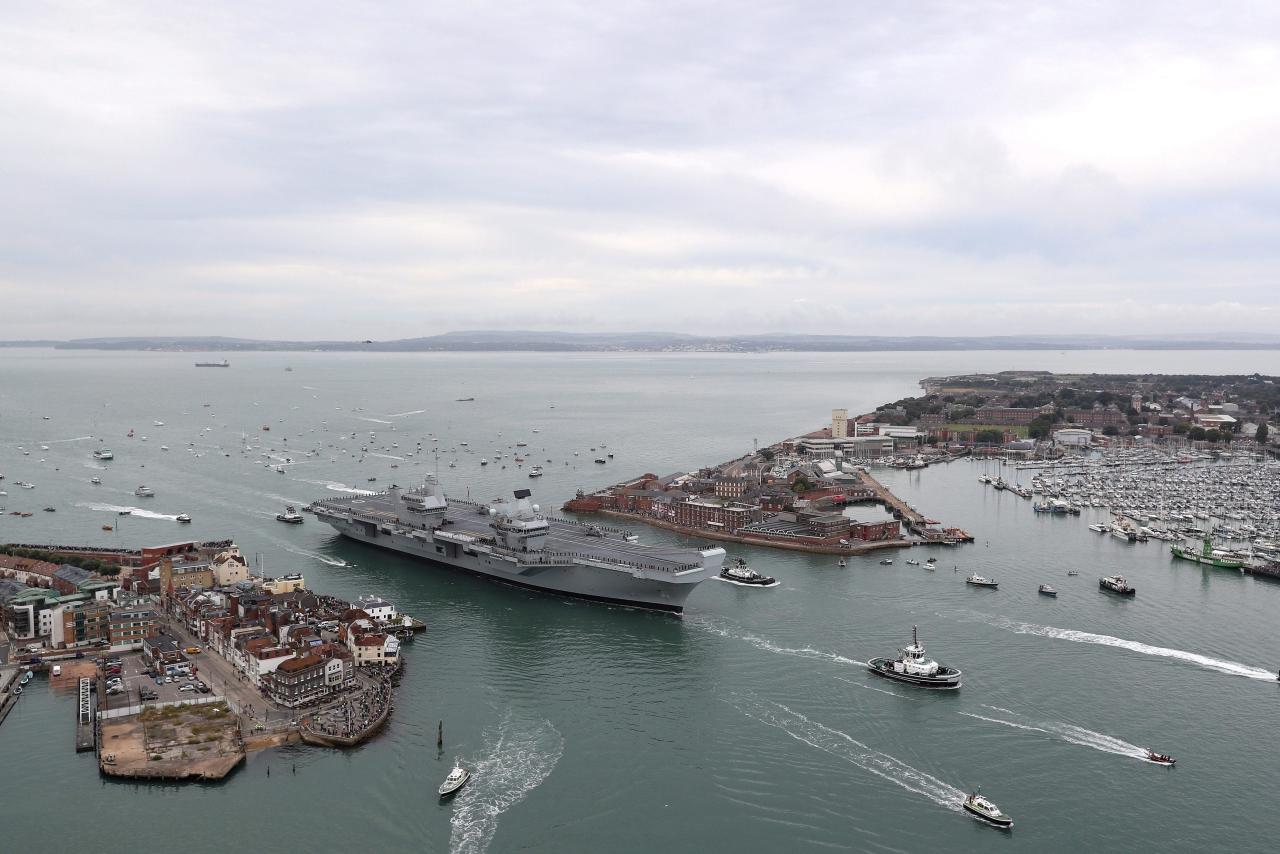ชาวอังกฤษ สุดภูมิใจ เรือเอชเอ็มเอส ควีนเอลิซาเบธ เรือบรรทุกเครื่องบินลำใหม่ และใหญ่โตที่สุดเท่าที่กองทัพอังกฤษเคยสร้าง เดินทางถึง ‘บ้าน’ ฐานทัพเรือพอร์ตเมาธ์ เป็นครั้งแรก