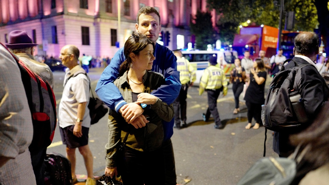 ผู้คนจำนวนมากออกมายืนรอหน้าสถานีรถไฟ ยูสตัน หลังตำรวจสั่งอพยพ