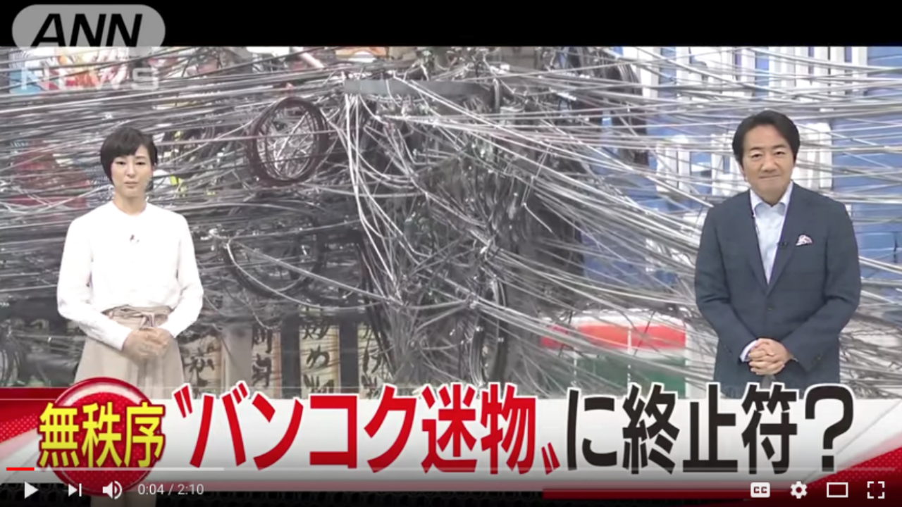 สถานีข่าว ANN ในญี่ปุ่น ส่งนักข่าวมาทำข่าว เกี่ยวกับ สายไฟในกรุงเทพฯ ที่พันกันยุ่งเหยิง จนมีชาวต่างชาติที่มาเที่ยวประเทศไทยพากันถ่ายภาพและนำไปเผยแพร่บนโลกโซเชียล ทำชาวโลกอึ้งกันมาแล้ว โดย จากคลิปวิดีโอรายงานข่าวของสถานีข่าว ANN ที่นำมาเผยแพร่บนยูทูบเมื่อวันที่ 26 ส.ค.60 นั้น นักข่าวหนุ่มของสถานีข่าว ANN ได้พาไปดูบริเวณถนนอโศกมนตรี ในกรุงเทพฯ ที่มีชาวญี่ปุ่นอาศัยอยู่จำนวนมาก