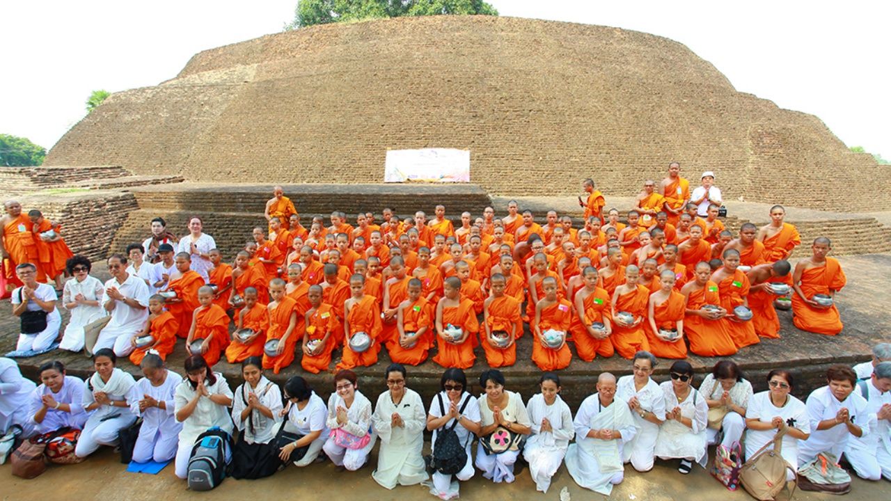 กลุ่มนักเรียนไทยรัฐวิทยา จำนวน 28 คน ร่วมบรรพชาสามเณร 99 รูป ใต้ต้นศรีมหาโพธิ์ ตามโครงการปลูกต้นกล้า ยาตราพุทธภูมิ รุ่นที่ 2 ณ ประเทศ อินเดีย-เนปาล เพื่อถวายเป็นพระราชกศล'ในหลวง ร.9'