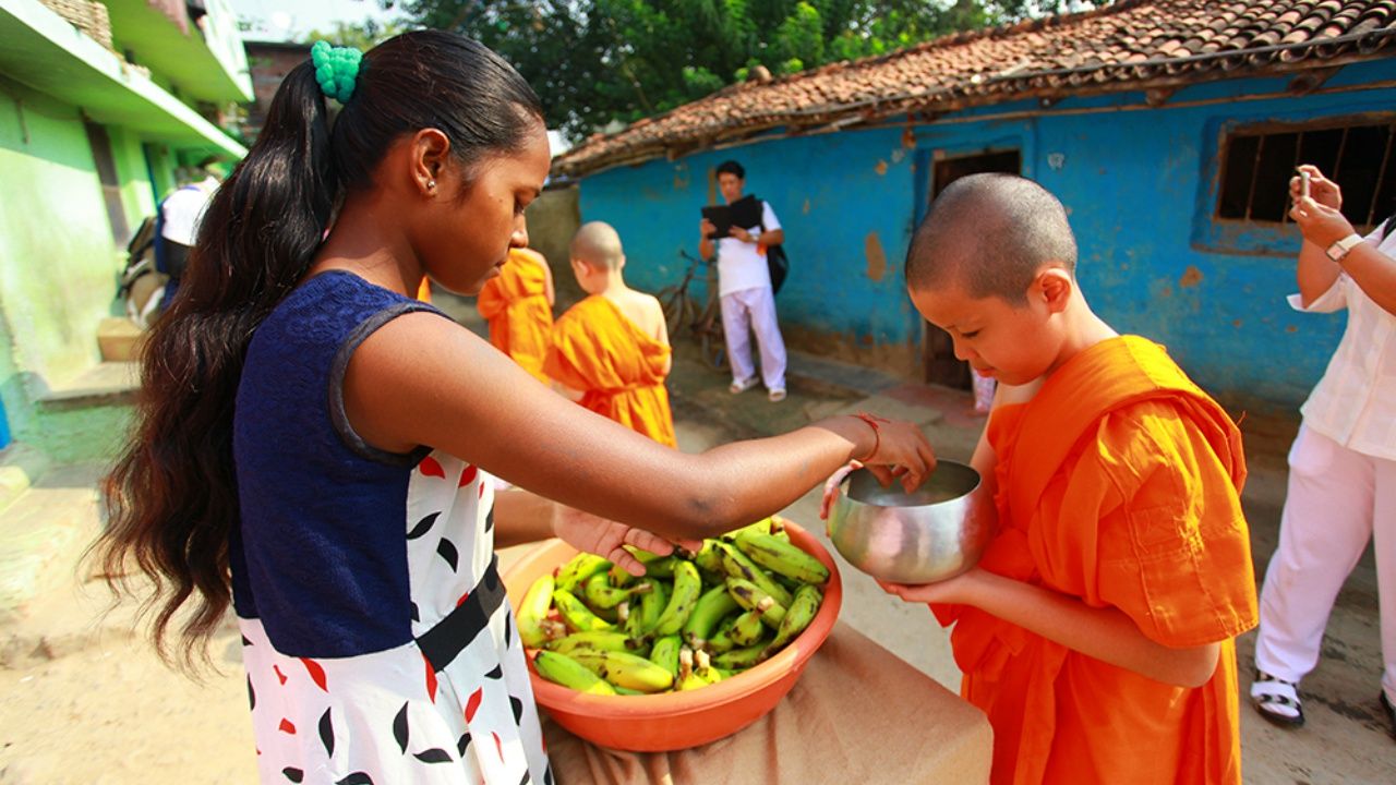 โดยในช่วงเช้า 14 ต.ค.หลังจากทำวัดเช้า นายศรัณย์ และนางภัทราวดี วิรุตมวงศ์ ประธานอุปถัมภ์ โครงการปลูกต้นกล้า ยาตราพุทธภูมิ ได้นำสามาเณร ทั้ง 99 รูป ออกปฏิบัติตามกิจของสงฆ์ คือ การออกเดินบิณฑบาต จากหน้าวัดไทยพุทธคยา เข้าไปในชุมชนอโศก เพื่อเป็นอีกหนึ่งบทเรียนที่ไม่สามารถหาในบทตำราได้ เพราะทำให้ได้เห็นวิถีชีวิตความเป็นอยู่ บ้านเรือนของชาวคยา ที่สร้างด้วยดิน ฉาบด้วยมูลโค เหมือนสมัยพุทธกาล ตลอดจนการใช้ชีวิตแบบเรียบง่าย ไม่จำเป็นต้องมีเครื่องอำนวยความสะดวกสบาย ก็สามารถดำเนินชีวิตอย่างมีความสุขได้ ระหว่างทาง มีชาวบ้าน นำข้าวสวย ผลไม้ ขนม ของพื้นเมือง มายืนรอใส่บาตรเป็นระยะ หลายคนเมื่อใส่บาตรแล้ว จะเอามือแตะที่เท้าของสามเณร เป็นการแสดงถึงความเคารพสูงสุด
