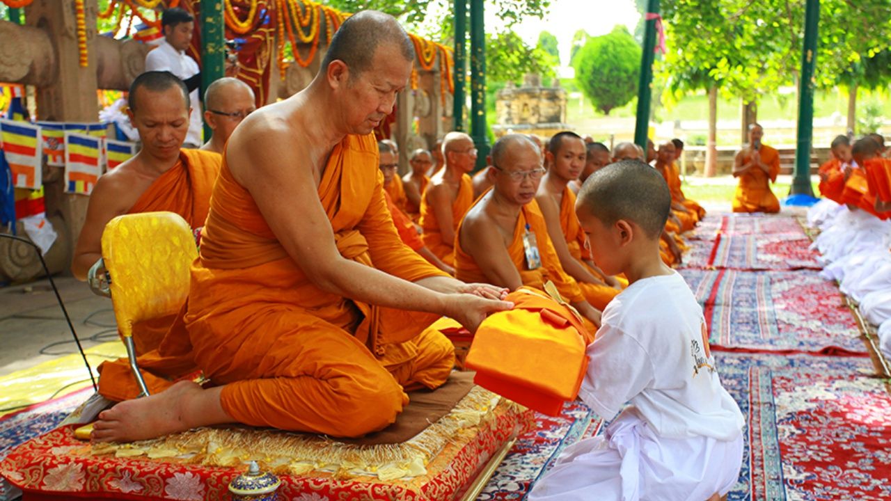 ทั้งนี้ หลังจากเหล่ากุลบุตร ทั้ง 99 คน ถึงบริเวณใต้ต้นศรีมหาโพธิ์ พระธรรมโพธิวงศ์ เจ้าอาวาสวัดไทยพุทธคยา หัวหน้าพระธรรมทูต สายประเทศอินเดีย-เนปาล ประธานฝ่ายสงฆ์ ได้นำกุลบุตร ทั้ง 99 คน สวดมนต์ภาวนา เพื่อให้เหล่ากุลบุตร เข้าใจในหลักของธรรมะ ก่อนที่ นายศรัณย์ และนางภัทราวดี ประธานฝ่ายฆราวาส เปิดกรวยดอกไม้ถวายสักการะ พระบรมฉายาลักษณ์พระบาทสมเด็จพระปรมินทรมหาภูมิพลอดุลยเดช และร่วมกันประกอบพิธีบรรพชาเพื่อจารึกประวัติศาสตร์ในถิ่นกำเนิดพระพุทธสานา ท่ามกลางชาวพุทธที่มาแสวงบุญตามรอยพระศาสดา และผู้ปกครองที่เดินทางมาด้วย ต่างซาบซึ้ง จากอานิสงส์การบวชของลูกหลาน และภาคภูมิใจที่ได้มีส่วนแห่งการสร้างเมล็ดพันธุ์ที่ดีของสังคม จากนี้ สามเณรทั้ง 99 รูป จะได้ศึกษาปฏิบัติธรรมในดินแดนพุทธภูมิ เป็นเวลา 10 วัน ก่อนที่จะกลับไปที่ปฏิบัติธรรมที่ประเทศไทย ในวันที่ 22 ต.ค.นี้