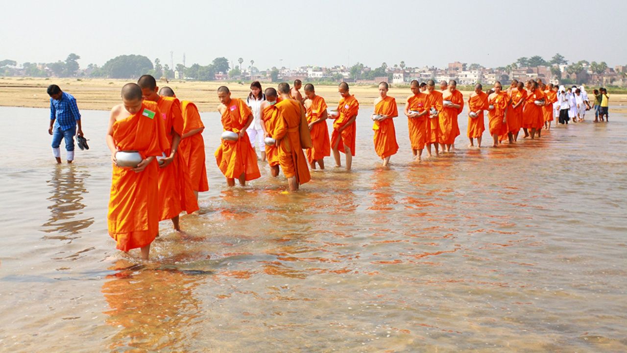 ทั้งนี้ สามเณร เดินผ่านลานกาลจักร ไปถึงพระมหาเจดีย์พุทธคยา สถานที่ตรัสรู้ ใต้ต้นพระศรีมหาโพธิ์ แล้วผ่านชุมชนมหาโพธิ์ซึ่งมีตลาดพุทธคยา ก่อนที่จะไปยังจุดข้ามแม่น้ำเนรัญชรา ซึ่งเป็นแม่น้ำที่กว้างใหญ่และมีความสำคัญทางพุทธประวัติ เนื่องจากสมเด็จพระสัมมาสัมพุทธเจ้า ก็เคยเดินข้ามมาแล้ว ขณะที่ยังไม่ได้ตรัสรู้ พระองค์ได้รับข้าวมธุปายาส ในถาดทองคำจากนางสุชาดา หลังเสวยข้าวมธุปายาส ได้ลอยถาดทองคำอธิฐานจิต หากจะตรัสรู้ ขอให้ถาดไหลทวนน้ำ และเหตุอัศจรรย์ก็เกิดขึ้น ถาดทองคำไหลทวนน้ำแล้วจมลง ซึ่งเกิดขึ้นที่แม่น้ำเนรัญชลาบริเวณนี้