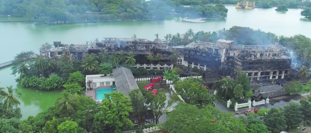 เกิดเหตุเพลิงไหม้โรงแรมหรู ‘กันดอจี พาเลซ’ ริมทะเลสาบ ที่ย่างกุ้ง พระเพลิงโหมไหม้รุนแรง จนอาคารวอดเกือบหมดทั้งหลัง เป็นเหตุให้มีผู้เสียชีวิต 1 ราย จนท.ดับเพลิงใช้เวลานานเกือบ 4 ชม.กว่าจะควบคุมเพลิงให้สงบลงได้