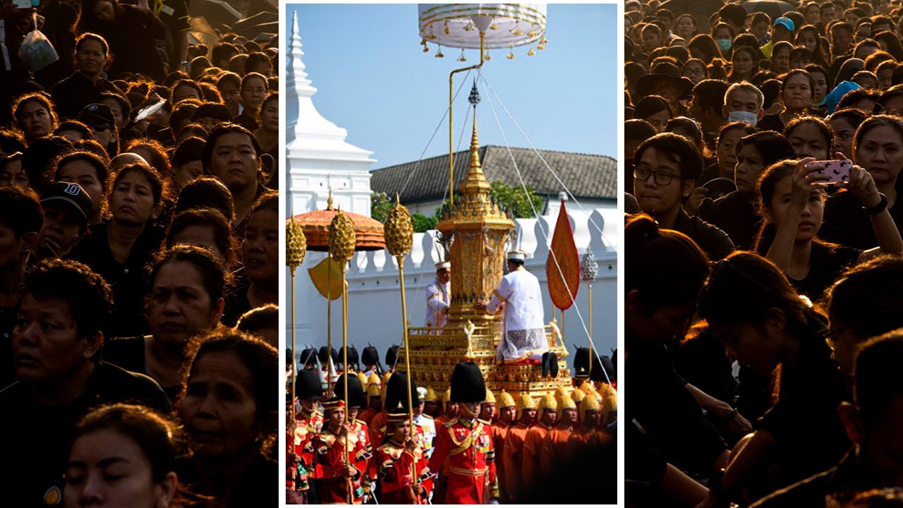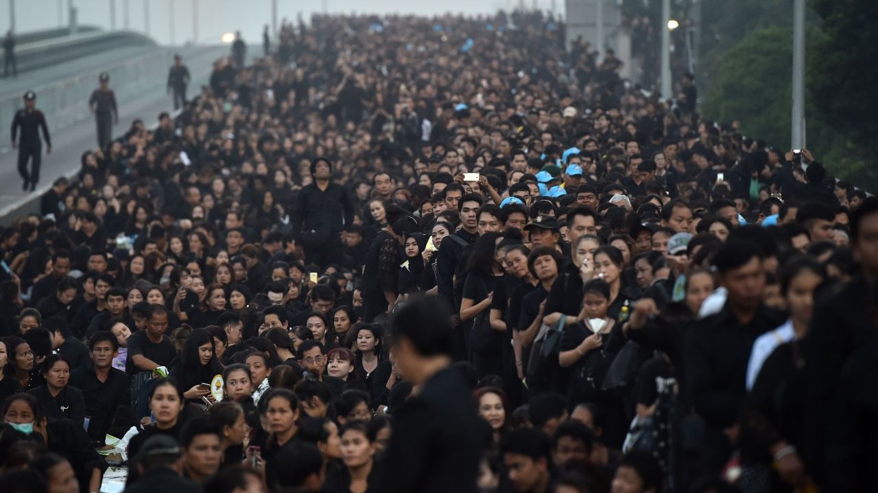 บีบีซี รายงานว่า ประชาชนจำนวนมากที่อยู่ในความโศกเศร้าอาลัยต่อการเสด็จสวรรคตของพระบาทสมเด็จพระปรมินทรมหาภูมิพลอดุลยเดช บรมนาถบพิตร ได้มาปักหลักรอจับจองพื้นที่รอบท้องสนามหลวงตั้งแต่หลายวันก่อน ถึงพระราชพิธีถวายพระเพลิงพระบรมศพ