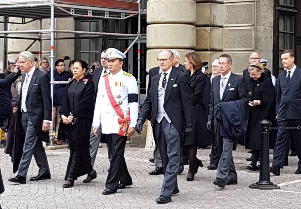 ก่อนเริ่มพิธีในเวลา 11.45 น.สำนักพระราชวังสวีเดน ได้อัญเชิญพระราชลัญจกรพิเศษ(ตราพระครุฑพ่าห์) จากพระราชวังกรุงสตอกโฮล์มไปยังโบสถ์รีดด้าโฮล์ม เพื่อถวายพระเกียรติสูงสุดแด่พระบาทสมเด็จพระปรมินทรมหาภูมิพลอดุลยเดช บรมนาถบพิตร โดยพระบาทสมเด็จพระปรมินทรมหาภูมิพลอดุลยเดช ได้รับการถวายเครื่องราชอิสริยาภรณ์ตราเซราฟีม เป็นเครื่องราชอิสริยาภรณ์ชั้นสูงสุดของสวีเดน เมื่อวันที่ 5 เมษายน 2493 ทางสำนักพระราชวังสวีเดนจึงได้จัดทำพระราชลัญจกรพิเศษสำหรับพระประมุขถวาย และเก็บรักษาไว้ที่สำนักพระราชวังสวีเดน และเมื่อพระประมุขเสด็จสวรรคตจะอัญเชิญพระราชลัญจกรพิเศษนี้ไปโบสถ์รีดด้าโฮล์ม ในวันเดียวกับที่มีพระราชพิธีพระบรมศพ เป็นประเพณีสืบเนื่องมาตั้งแต่ปี 2291