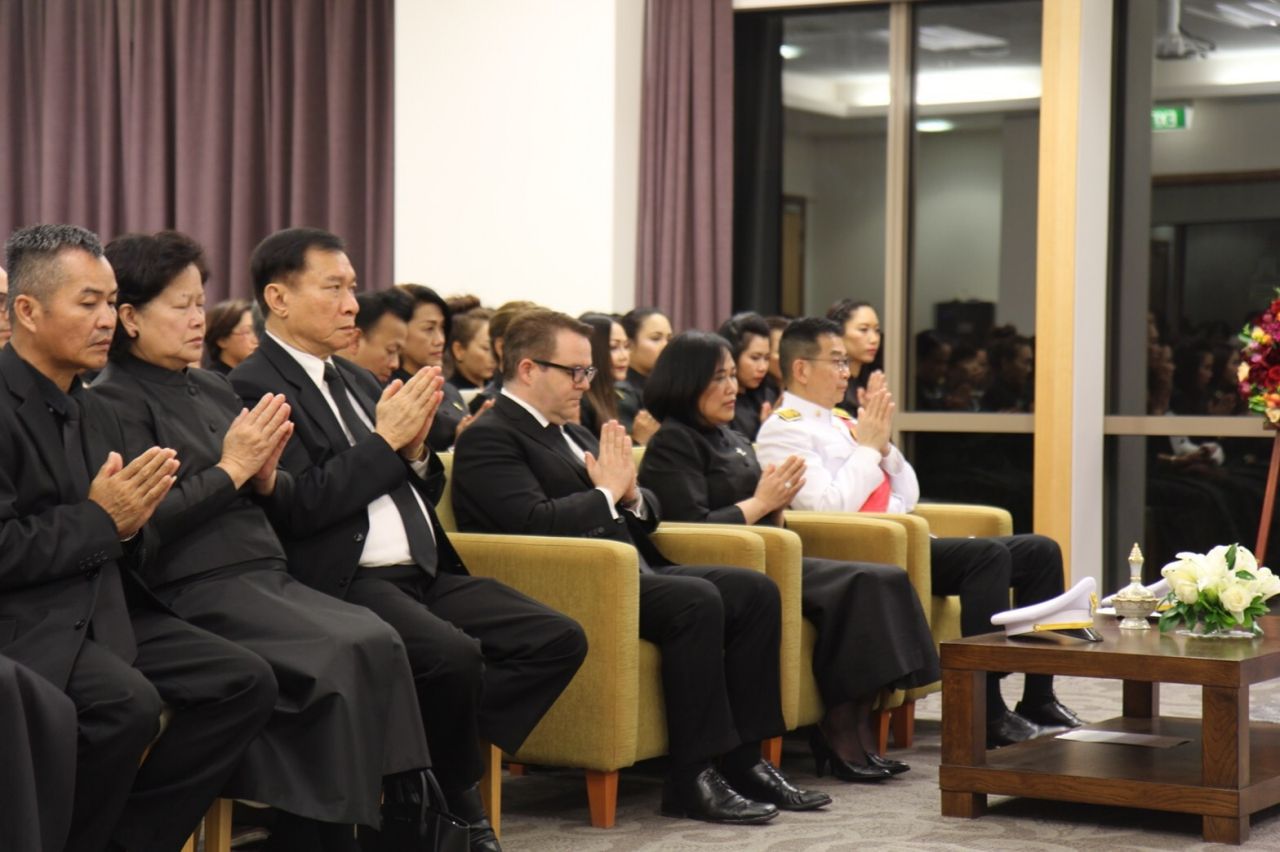 เอกอัครราชทูตฯ ได้เป็นประธานจุดธูปเทียนบูชาพระรัตนตรัย จุดเครื่องทองน้อยถวายสักการะพระบาทสมเด็จพระปรมินทรมหาภูมิพลอดุลยเดช บรมนาถบพิตร แล้วจึงได้นิมนต์พระราชวรญาณมุนี วัดญาณประทีปโอ๊คแลนด์ขึ้นแสดงพระธรรมเทศนา จากนั้นพระสงฆ์ 8 รูป สวดพระพุทธมนต์ เอกอัครราชทูตฯ ประเคนจตุปัจจัยไทยธรรม และทอดผ้าไตร พระสงฆ์สดับปกรณ์ เอกอัครราชทูตฯ กรวดน้ำอุทิศถวายเป็นพระราชกุศล พระสงฆ์อนุโมทนา และถวายอดิเรก